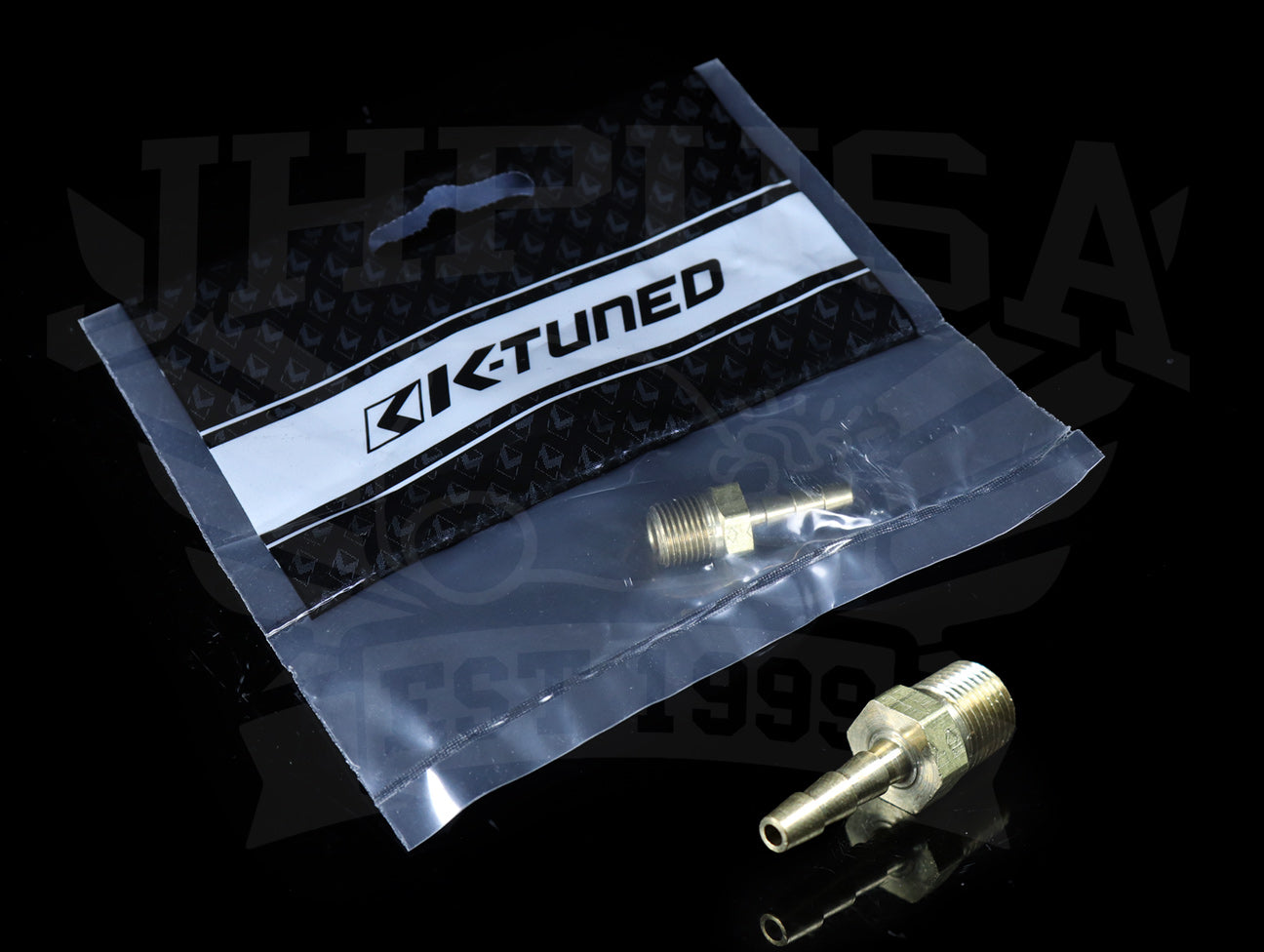 The K-Tuned brass vacuum push-on hose barb is used commonly in turbocharged (and non-turbo) applications for connecting a vacuum line.