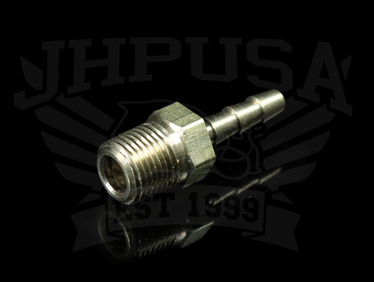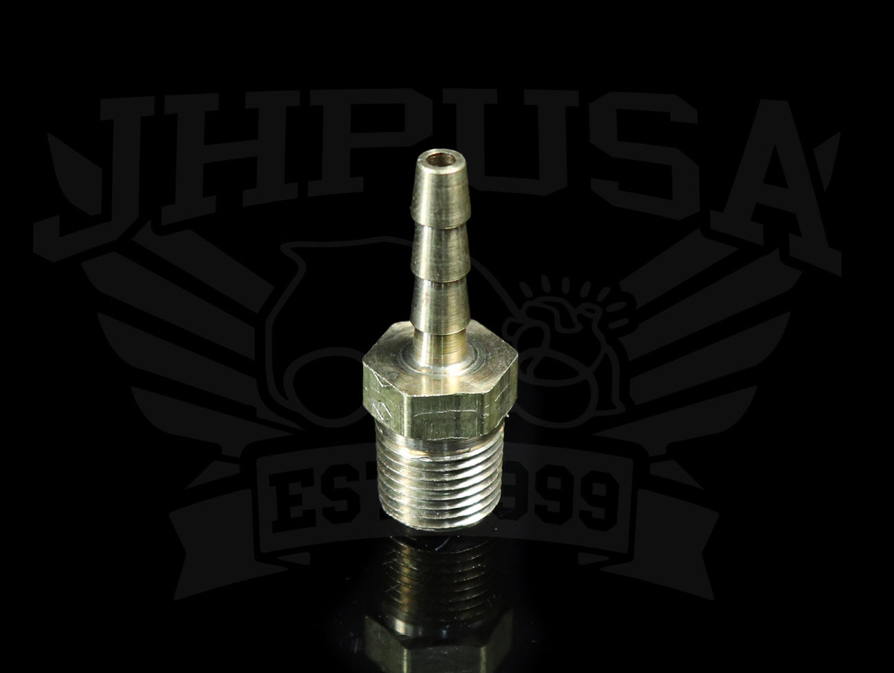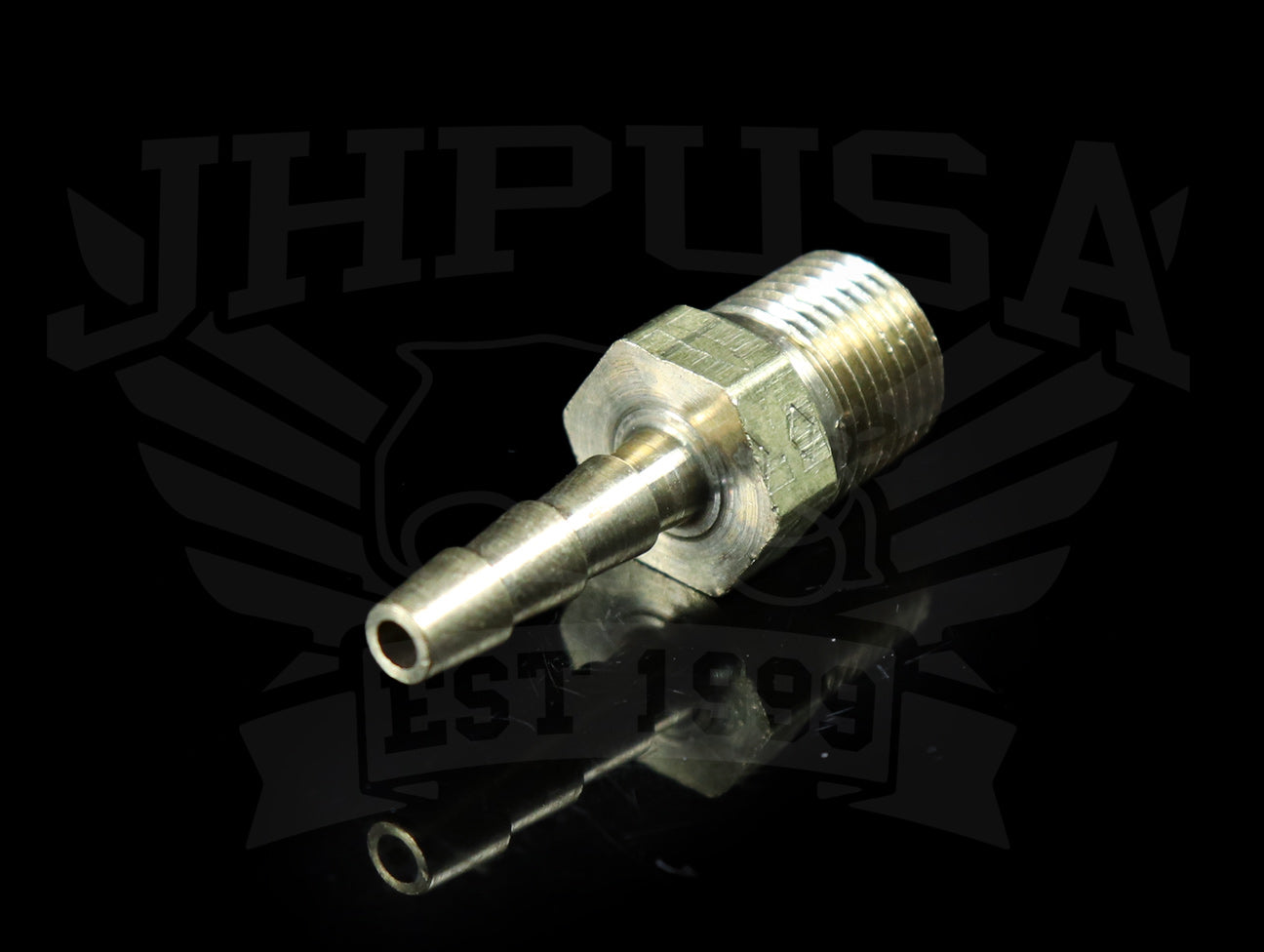 Straight 1/8" NPT to 4mm barb push-on hose vacuum fitting.