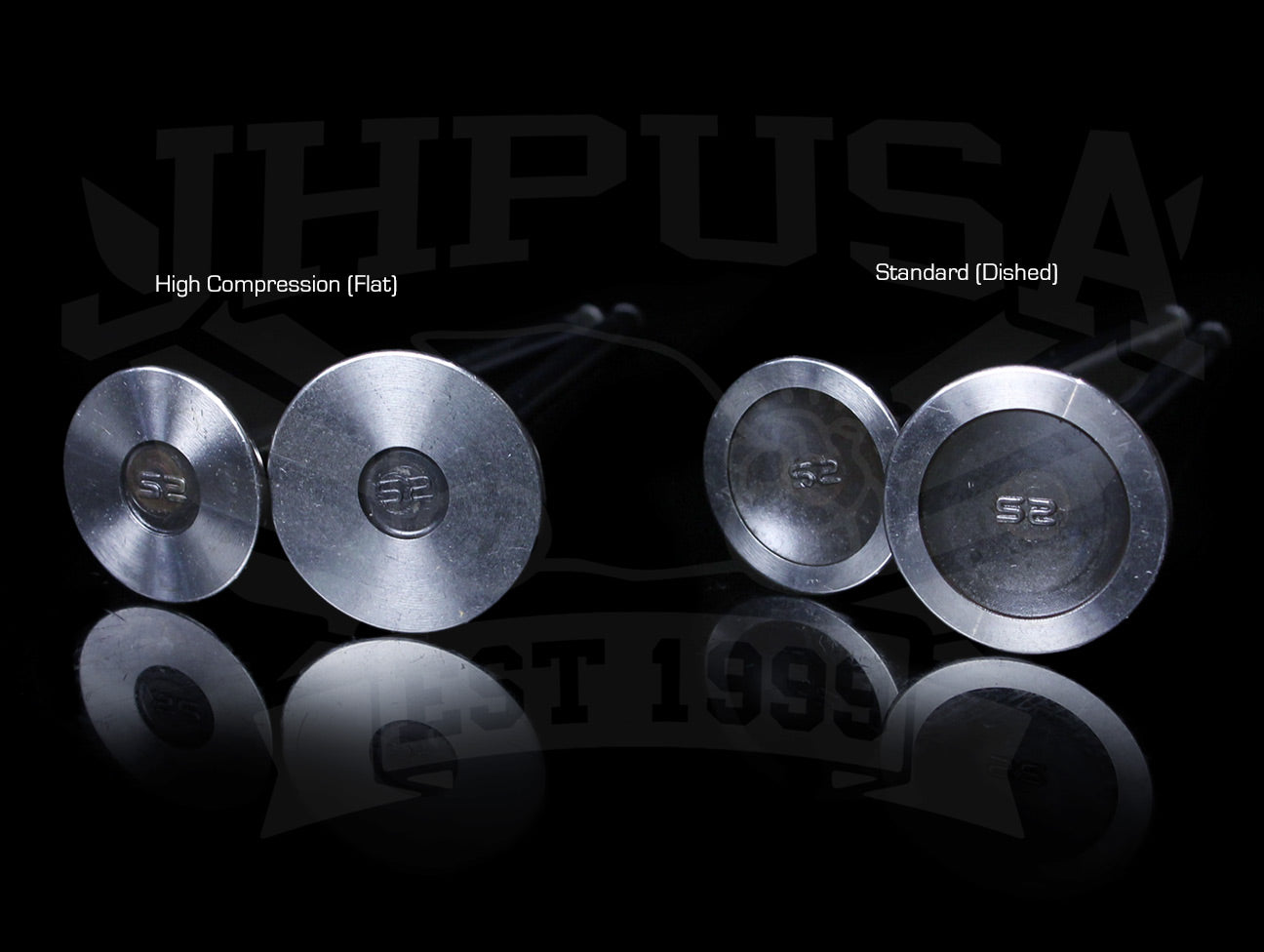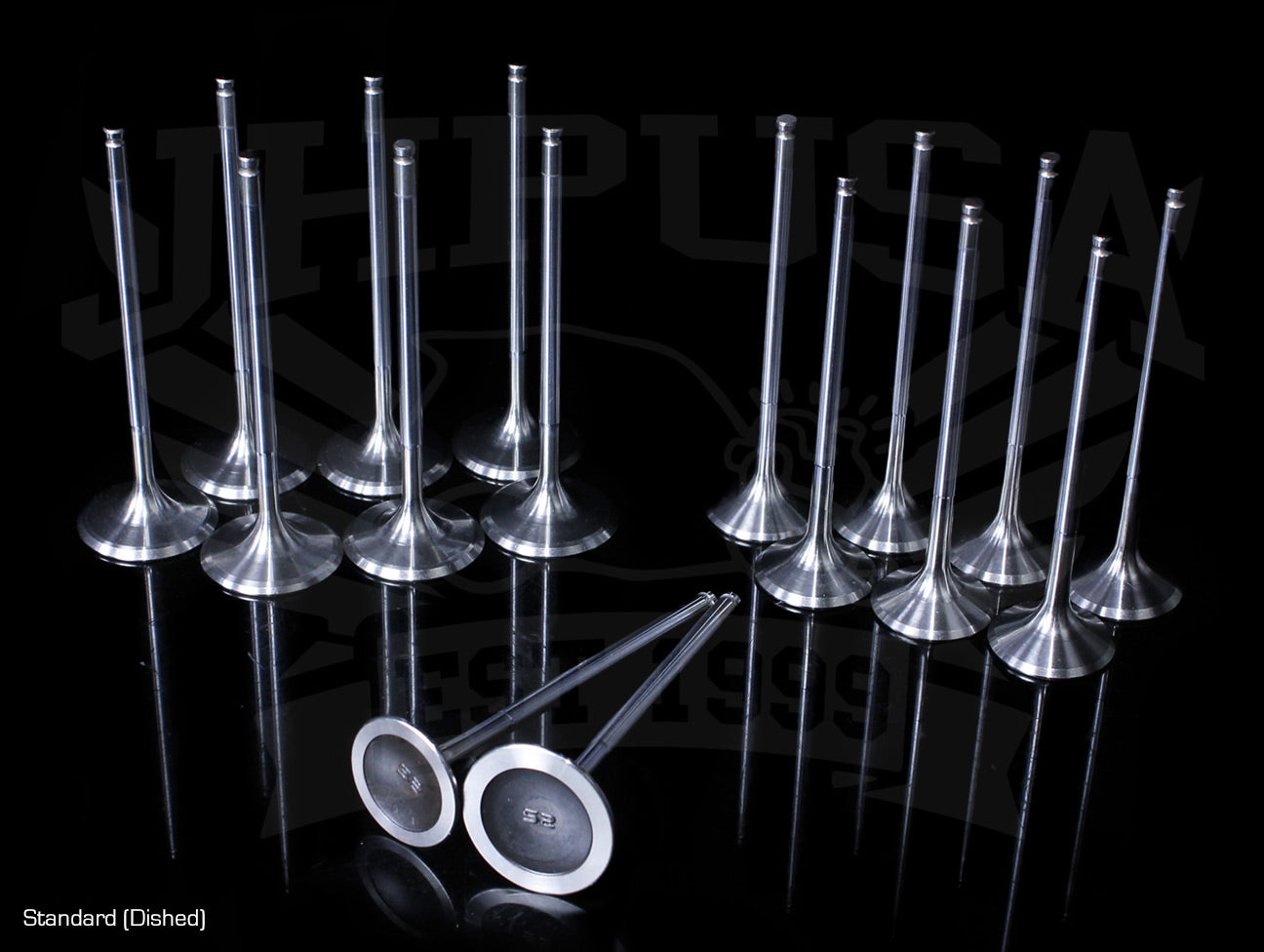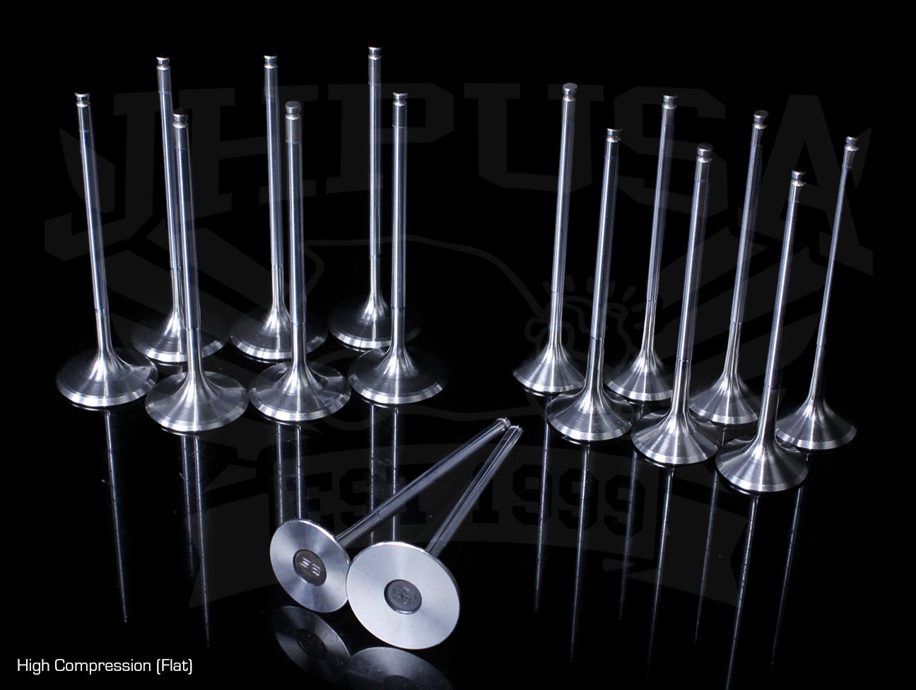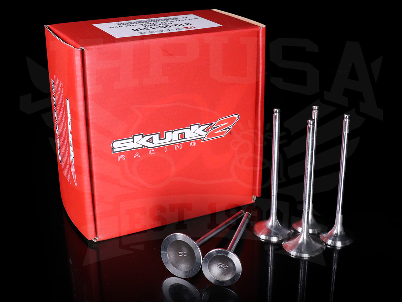 Skunk2 Alpha Series valves are manufactured from HNV3 martensitic steel (IN) and EV8 austenitic steel (EX) one-piece forgings, and each valve is heat-treated using a proprietary process for extraordinary strength and durability. Alpha Series Valves feature hard chrome plating and fully machined valve heads. Other valves may appear similar, but only Alpha Series Valves feature specially designed valve head profiles to optimize airflow.