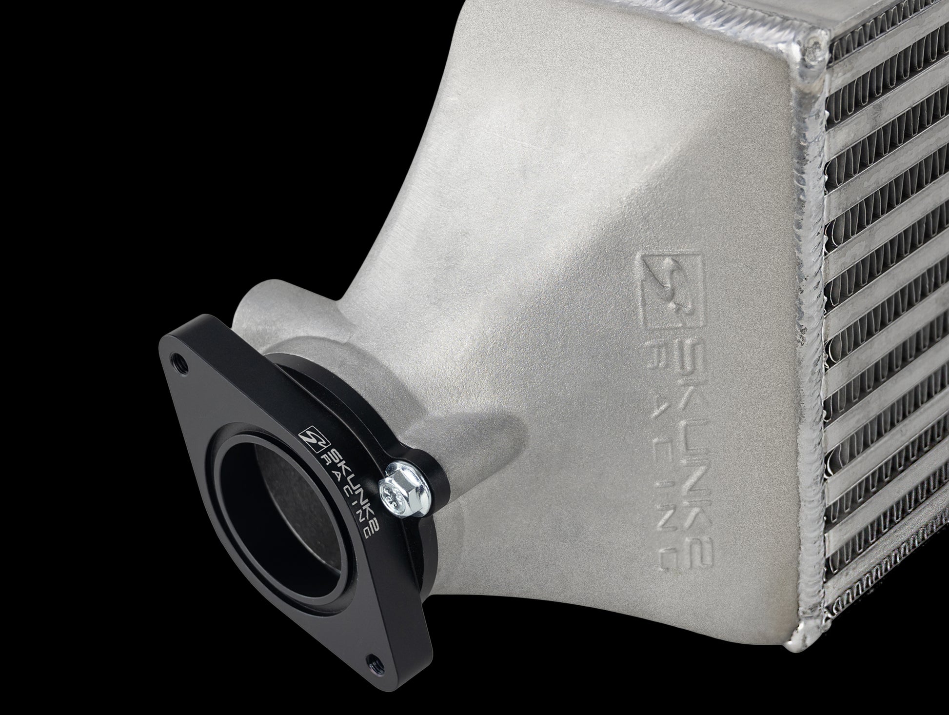 Skunk2’s Intercooler for the 2016 to 2021 Honda Civic (1.5T) is a direct bolt-in intercooler that dramatically improves engine performance and reliability. Unlike the factory intercooler that is restrictive and made of plastic, the Skunk2 intercooler is All-Aluminum, and features cast A357 end-tanks that are TIG welded to a high-efficiency bar and plate cooling core that is larger and less restrictive than stock. Each intercooler includes all necessary mounting hardware and CNC billet inlet/outlet adapters to connect to both OEM and aftermarket intercooler piping.