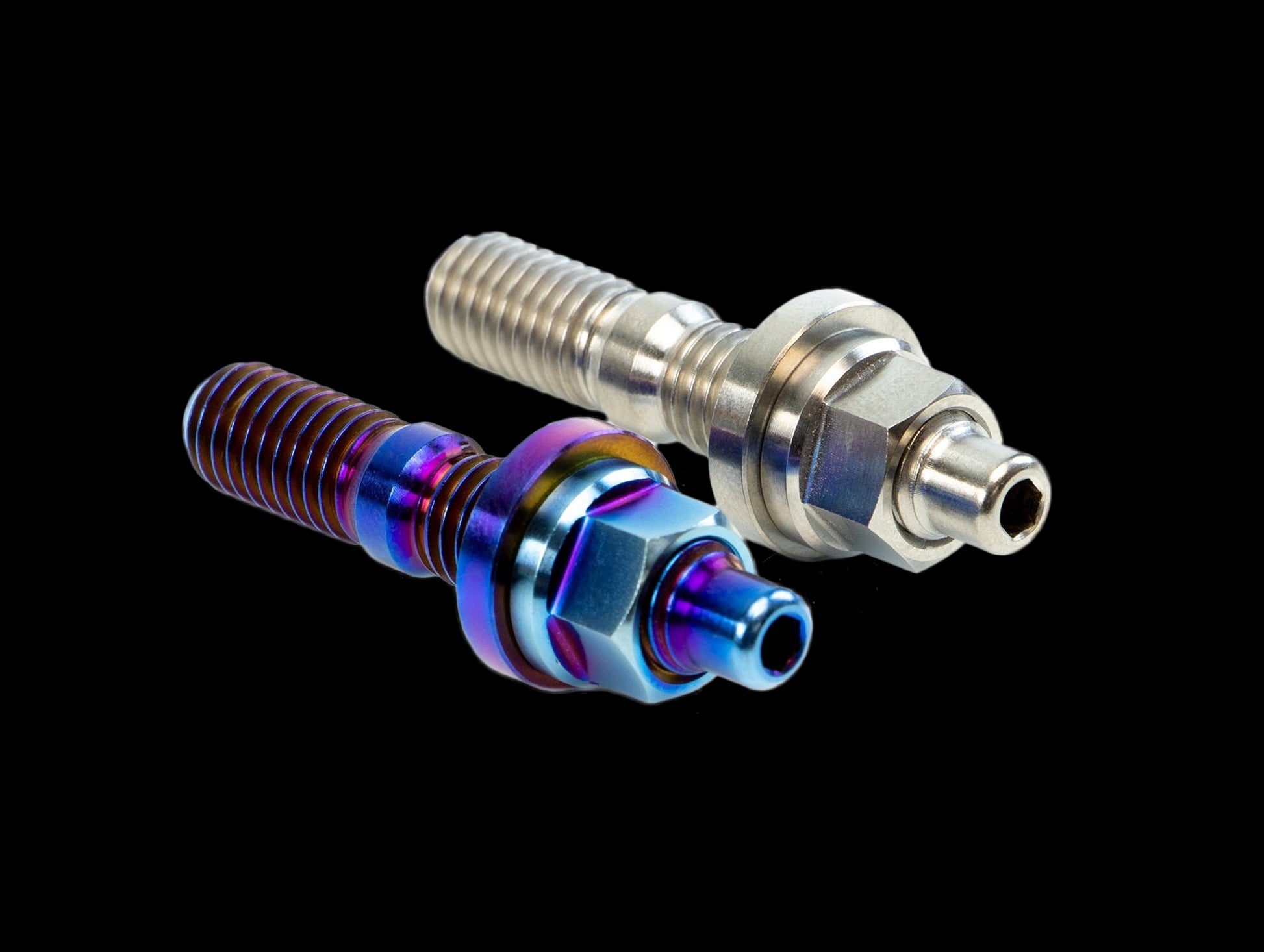 SpeedFactory Titanium Stud Kits are made of high quality Ti 6Al-4V and incorporate a hex key tip that allows them to be easily installed using an Allen wrench. Titanium 6-point nuts and washers are included.