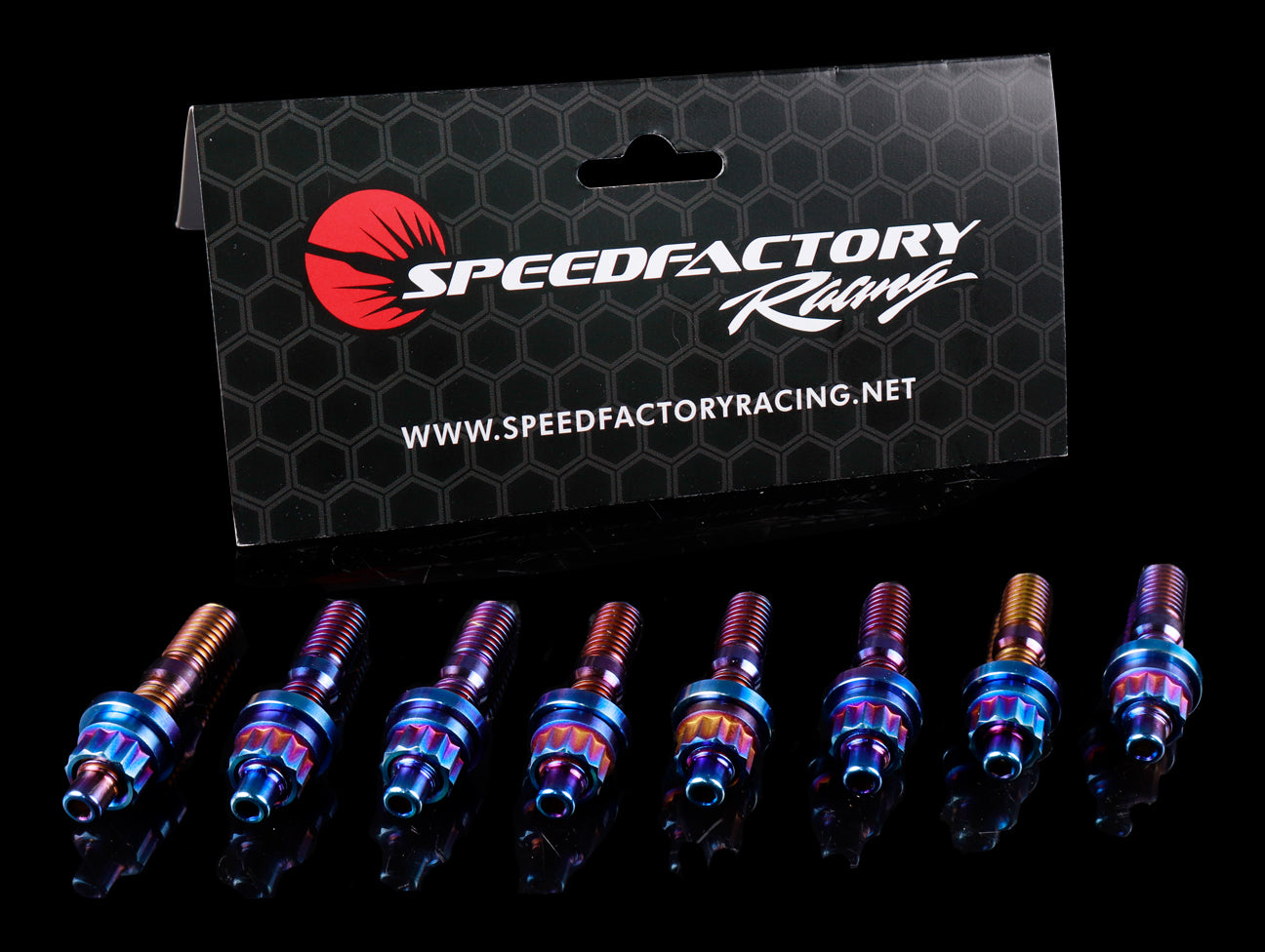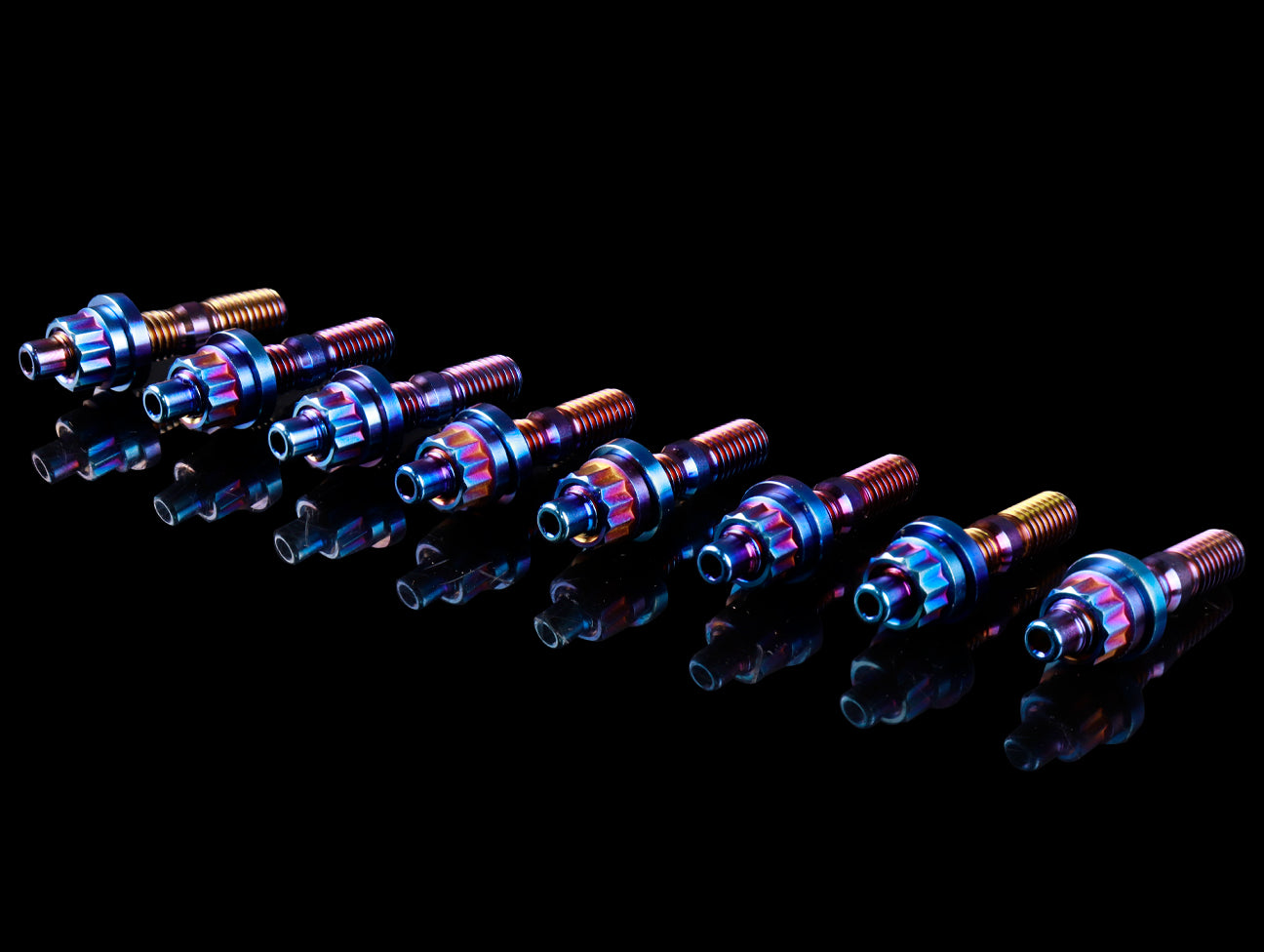 SpeedFactory Titanium Stud Kits are made of high quality Ti 6Al-4V and incorporate a hex key tip that allows them to be easily installed using an Allen wrench. Titanium 10mm 12-point nuts and washers are included.