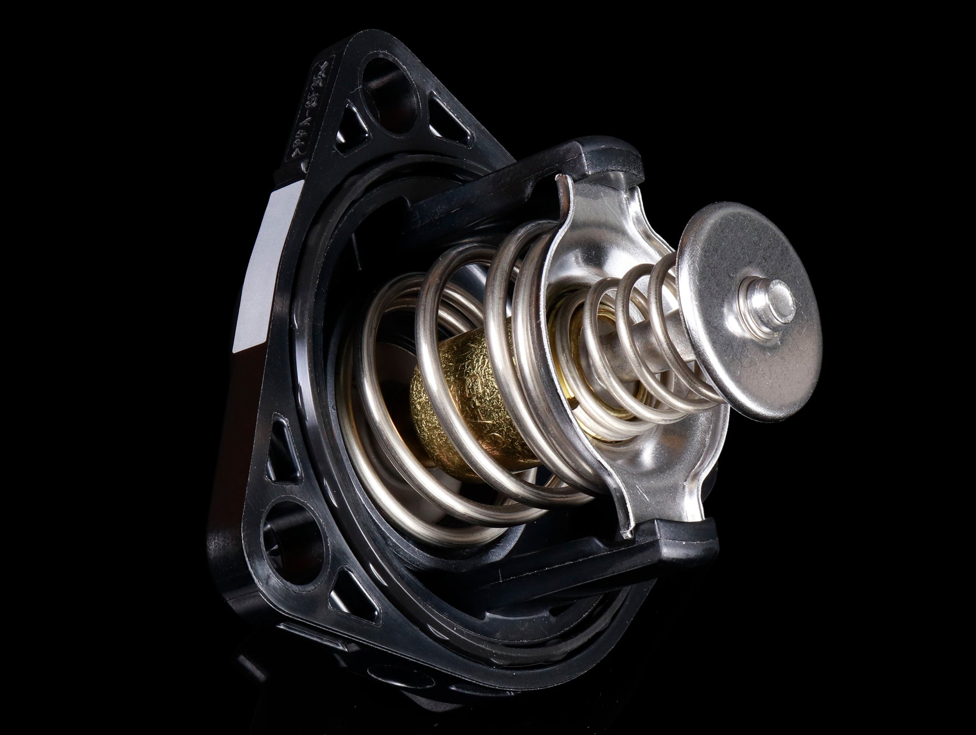 The stock thermostat that keeps the cooling water temperature in check and has been set up for normal street use. This results in a relatively high temperature operating range. This can become a risk for sports driving as the cooling water temperature shoots up, causing the engine to power down from overheating.