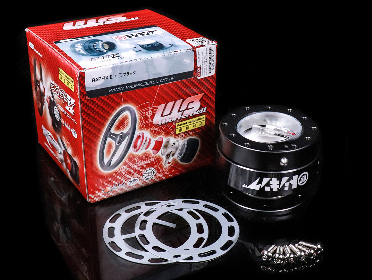 Works Bell is Japan's premier interior performance company, well known for their Rapfix series of quick releases. The Rapfix II uses a patented ball locking design which will not come off during driving but allows for quick and easy removal. No play whatsoever, this is the ORIGINAL! The piece is a cold forged aluminum body, which is track tested and proven by the top Japanese race drivers. Makes it easier to get in and out of your car, and also provides added security when parked.