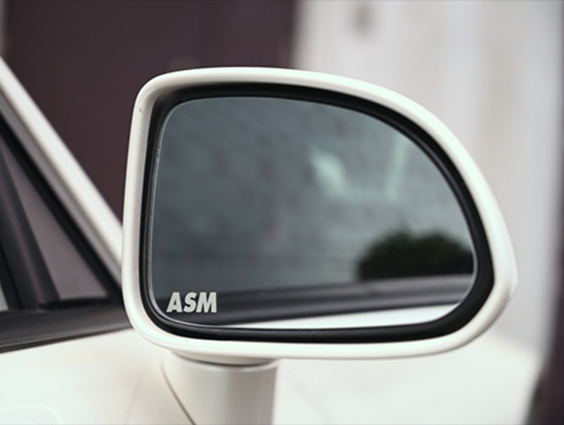 ASM wide-angle door mirrors have been newly released with a change in specifications. The curvature of 1000R that minimizes surface distortion and the natural clear color instead of the blue and yellow colors that are popular as dress-up parts remain the same, and the ASM logo on the right seat side and the official S2000 logo are newly added on the left seat side. Previously, it was assembled on the base of the genuine mirror assy, but this time it has been changed to a common mounting method that is attached with double-sided tape.