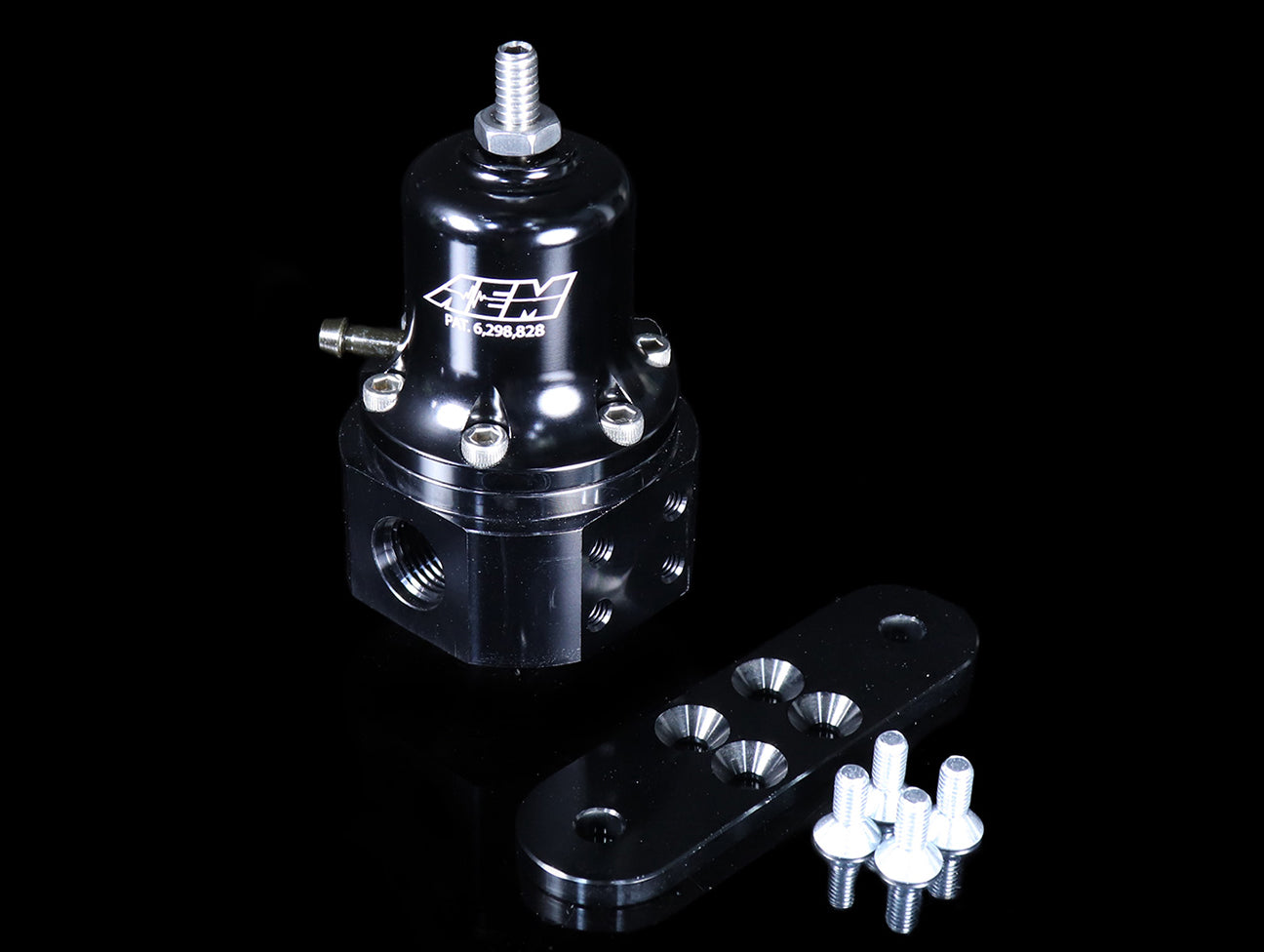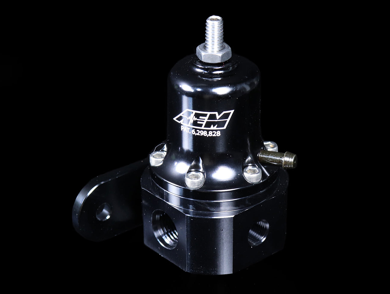 AEM's high capacity universal adjustable fuel pressure regulator is the perfect solution for racers who need reliable fuel pressure in high-boost vehicles and racecars that require a large volume of fuel delivery. Thanks to the tall FRP head, a longer internal spring provides for a wider range of adjustment (from 40 to 130 PSI). An easy-to-adjust set screw stands up to repeated adjustments.