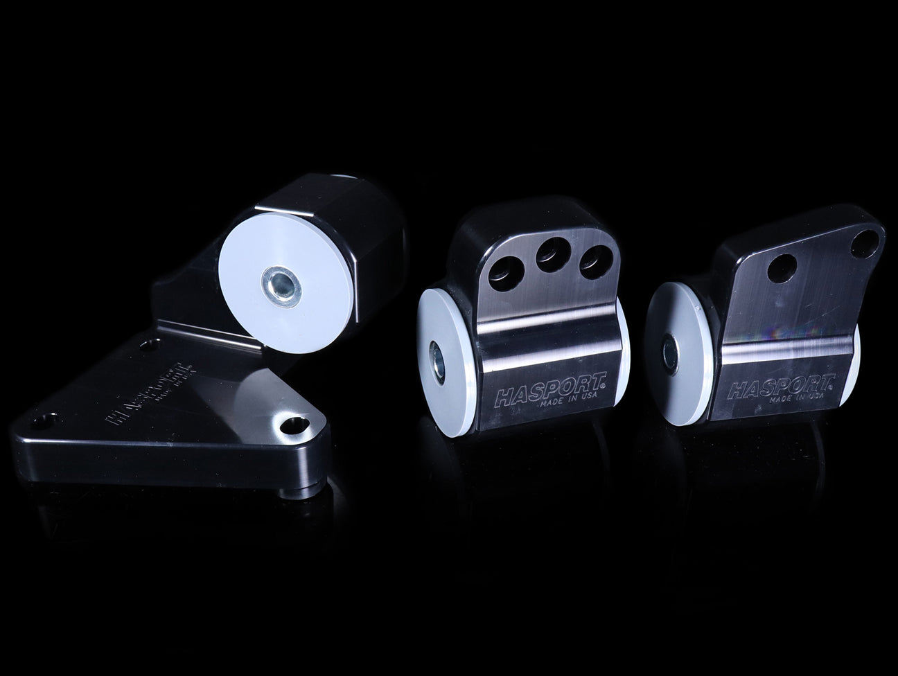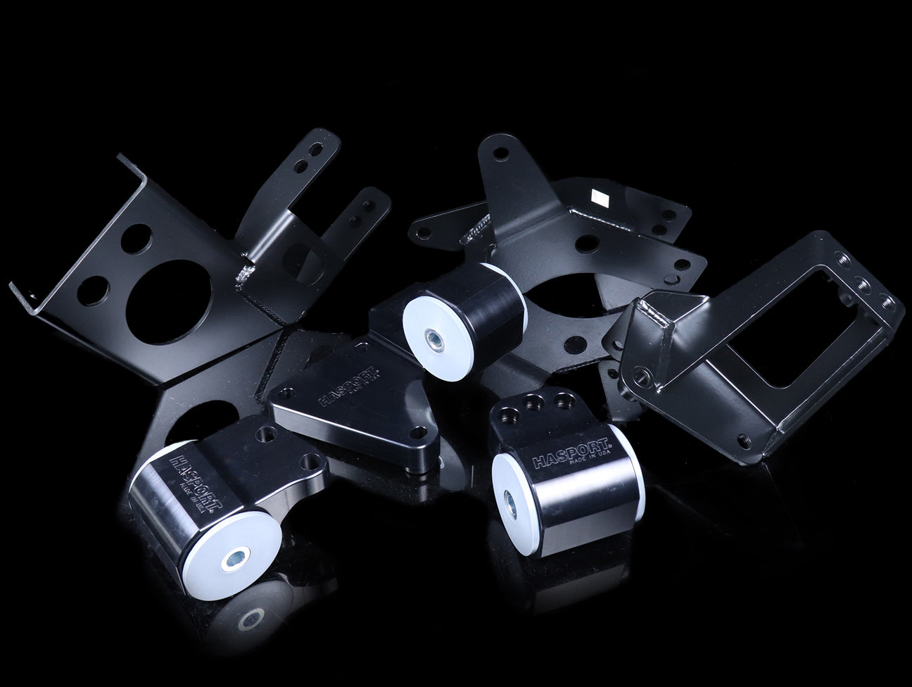 Hasport's EGK4 K-swap mount kit features Hasport's patent pending dual height engine mounts while adapting a K24 Accord or TSX transmission. Dual height boasts whether you're using a K20 or K24 engine the head remains in the same location. Headers, intakes and turbo kits will fit the same no matter which engine you choose. The Accord & TSX manual K24 transmission's have a different mount position vs. a typical RSX/Civic K20A transmission's thus the purpose of this mount kit.