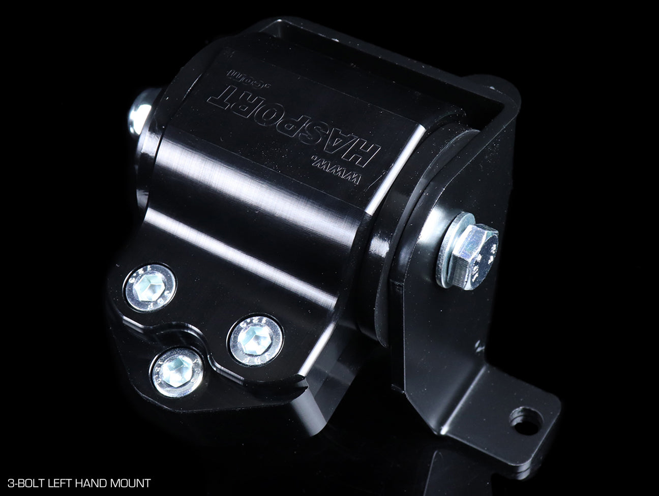 Hasport billet black B or D-series stock replacement mount kit with your choice of 2 or 3 bolt style left mount for the 96-00 EK civic.