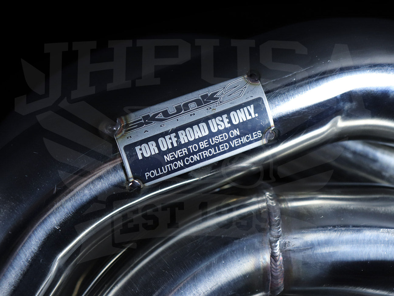 All Skunk2 headers are designed and engineered to maximize exhaust flow and increase both horsepower and torque throughout the powerband. The unique design is the result of more than a decade of racing experience coupled with computerized modeling and extensive dyno testing. Each Skunk2 Alpha Series Header features equal-length, single step design and a 4-1 design that terminates into a True Merged collector with a 2.5-inch outlet. Skunk2's Alpha Series headers are designed using mandrel bends which result in maximum air flow and power. These features, paired with Skunk2’s unique design specs, provide an extremely broad powerband that’s applicable to a wide range of engine sizes and configurations. Alpha Series Headers also feature bung provisions for OEM sensors. Each header is constructed from stainless steel with mandrel-bent tubing for added strength, corrosion resistance, and durability.