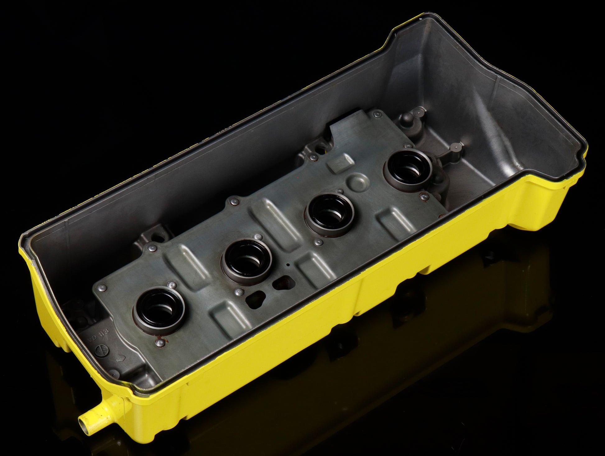 This listing is for a Used OEM Honda K-Series Valve Cover that's painted yellow. The valve cover is in good condition other than a few scratches and blemishes on the paint as shown in the photos.
