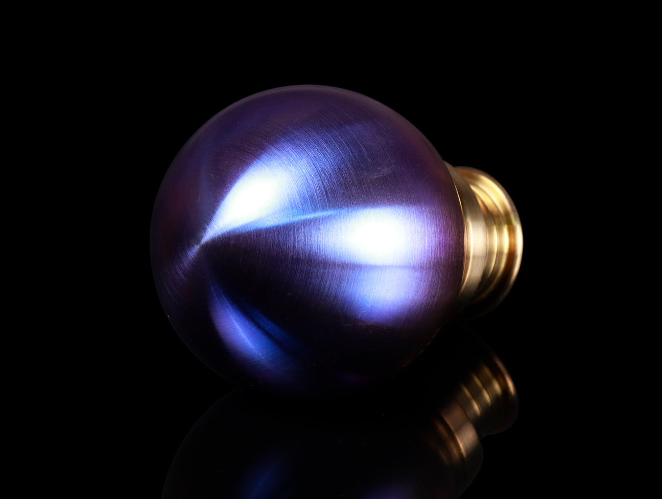 Each POCO-Ti features a heavy, stainless steel inner core and a titanium outer shell in a tasteful, hand-brushed, burnt finish that fades from gold to purple to blue. The shift boot collar is also titanium and features a burnt finish in gold. An elastomer ring in the knob provides the collar retention feature, similar to our very popular 1924 shift boot collars. All lettering is laser-etched for durability in a burnt blue color.