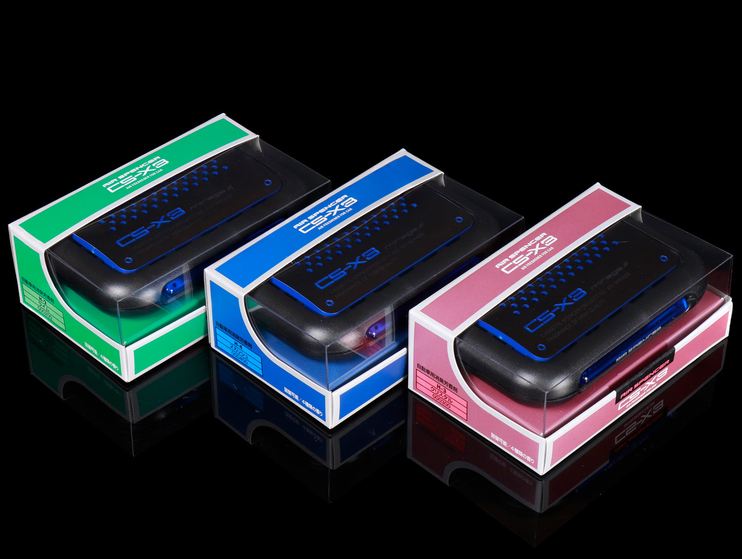 The CS-X3 Air Spencer air freshener is one of the sweetest and unusual addictive scents to hit the US market from Japan. The outer cassette style casing is made from high quality plastic with a smooth sleek finish, topped with a chrome CS-X3 emblem. The inner scent cartridge is refillable cassette featuring a sliding louver to adjust the strength of the scent.