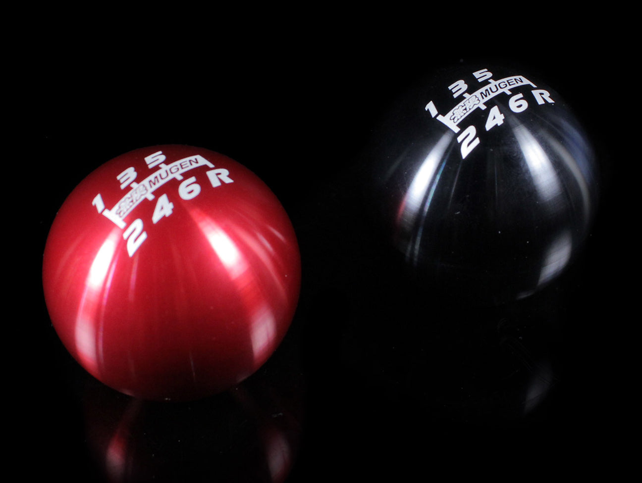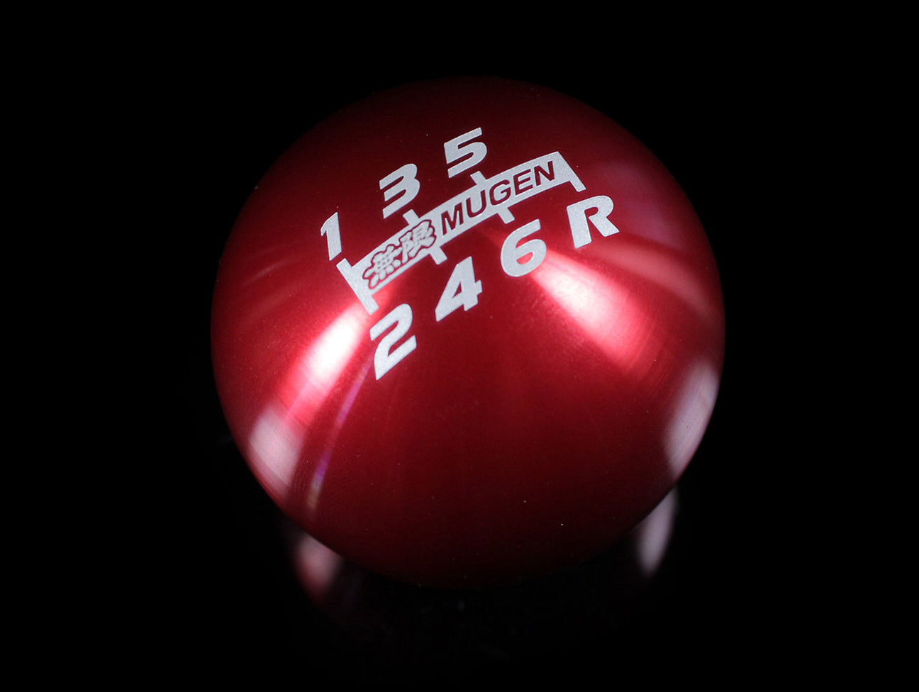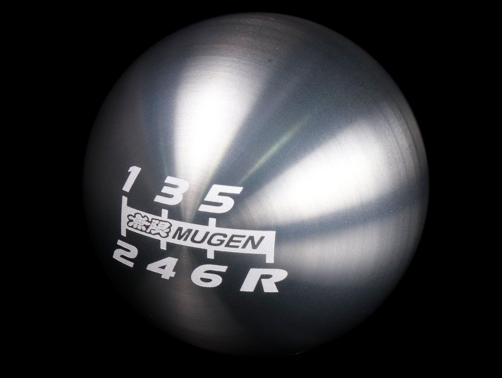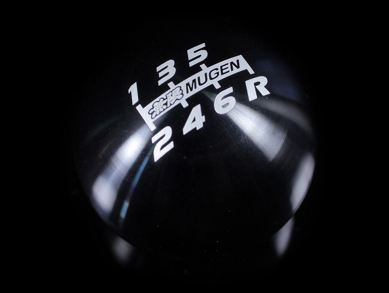 The Mugen Sphere 6MT (6-speed) shift knob is CNC machined from aluminum with 6-speed shift pattern and "Mugen" laser printed in the center. This high quality traditional style shift knob ensures precise shifts every time and is a great dress up interior piece!