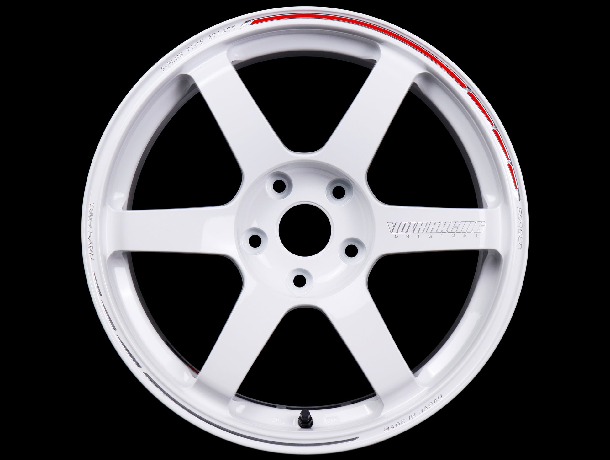 The Long Awaited Time Attack Model! TE37 SAGA S-plus evolved in 2021. A limited model is now available from the SAGA S-plus. The body color is TE37's traditional Dash White or Glossy Black. The red line on the outer circumference and the aluminum strobe line are designed to attract attention when in rotation.