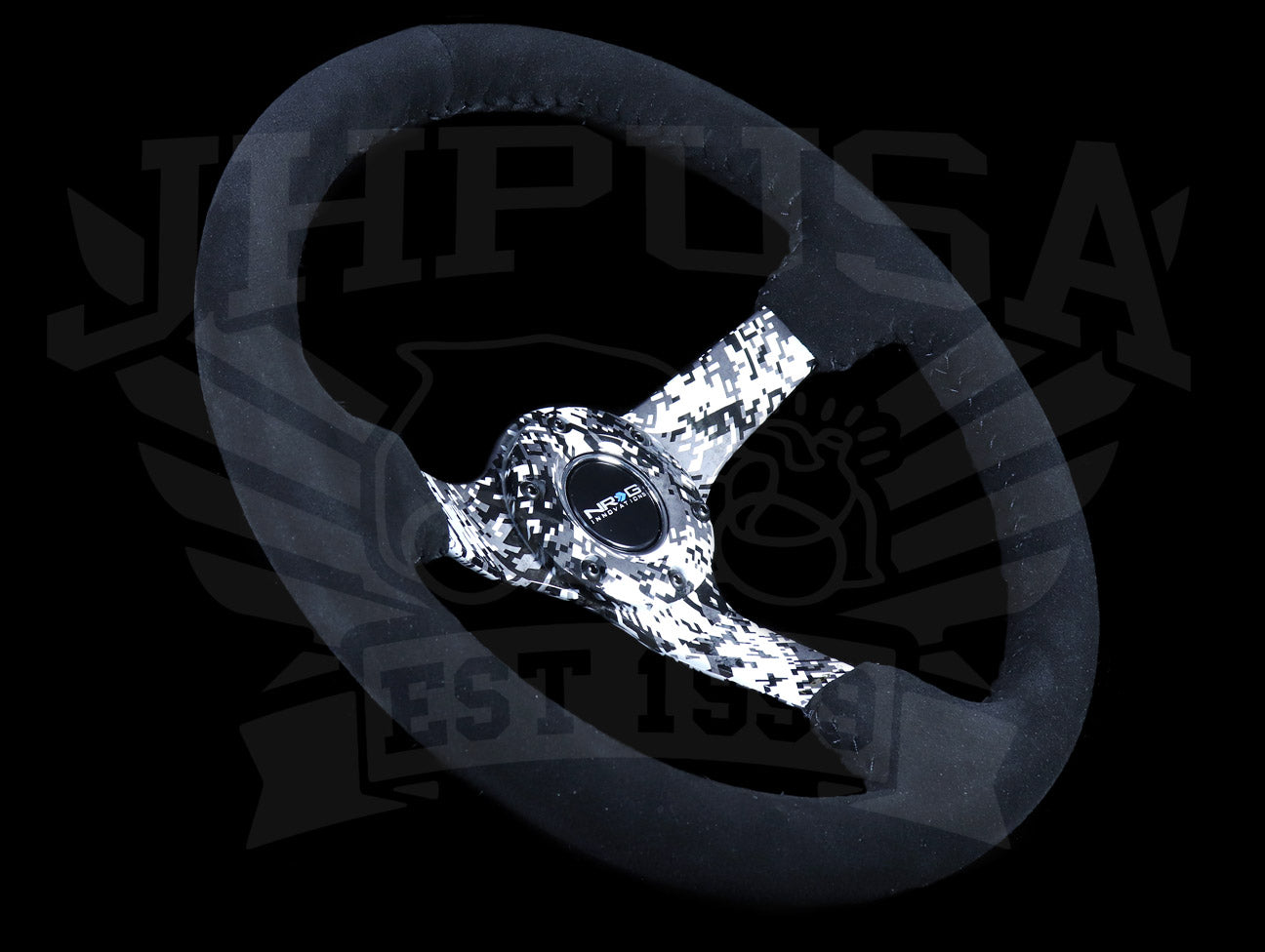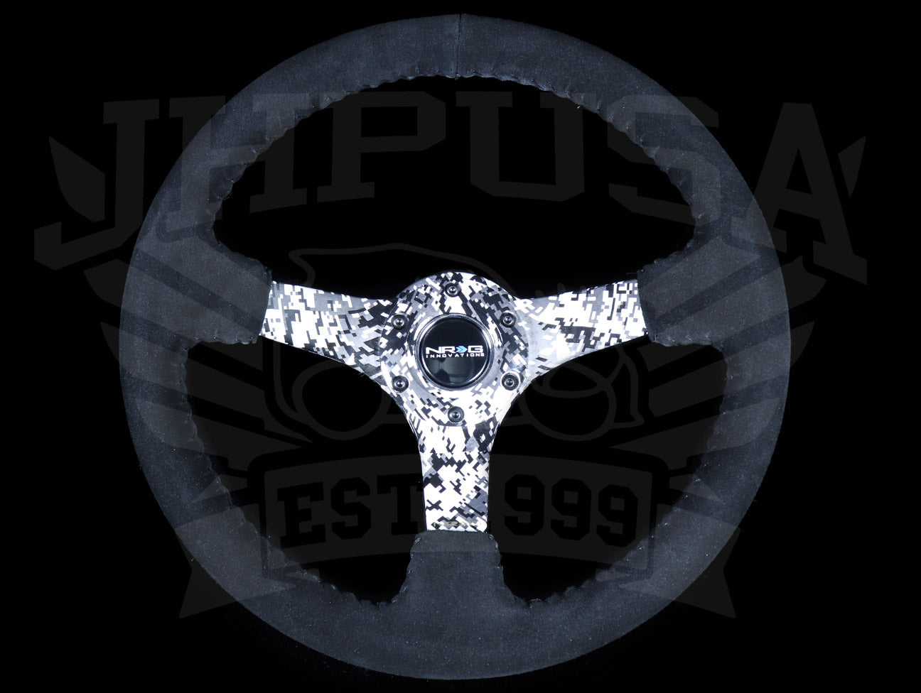 NRG Reinforced Digital Camo Sport Steering Wheel - 350mm Black Suede / Black Stitch