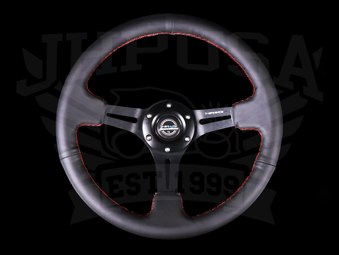 The NRG Innovations Reinforced Sport Steering wheel is the newest addition to NRG's line of steering wheels. The 3" deep dish series sport steering wheel is the perfect choice to get that sporty look in your vehicle. The black three spoke dish design is made from high grade aluminum for added style and performance. Wrapped in high quality leather with red stitching for that aggressive look, the new wheels have a superb feel and look to them.