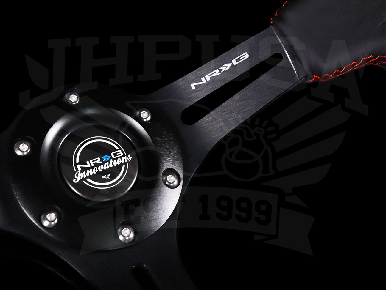 NRG Reinforced Sport Steering Wheel - 350mm Black Leather / Red Stitch