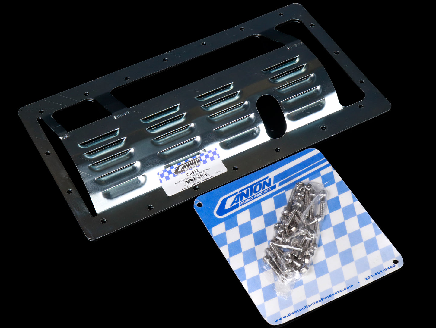 Multi-louvered windage tray designed to mount between a non-girdle engine block and Canton oil pan #15-962 to maximize horsepower. Includes oil pan mounting studs and nuts.