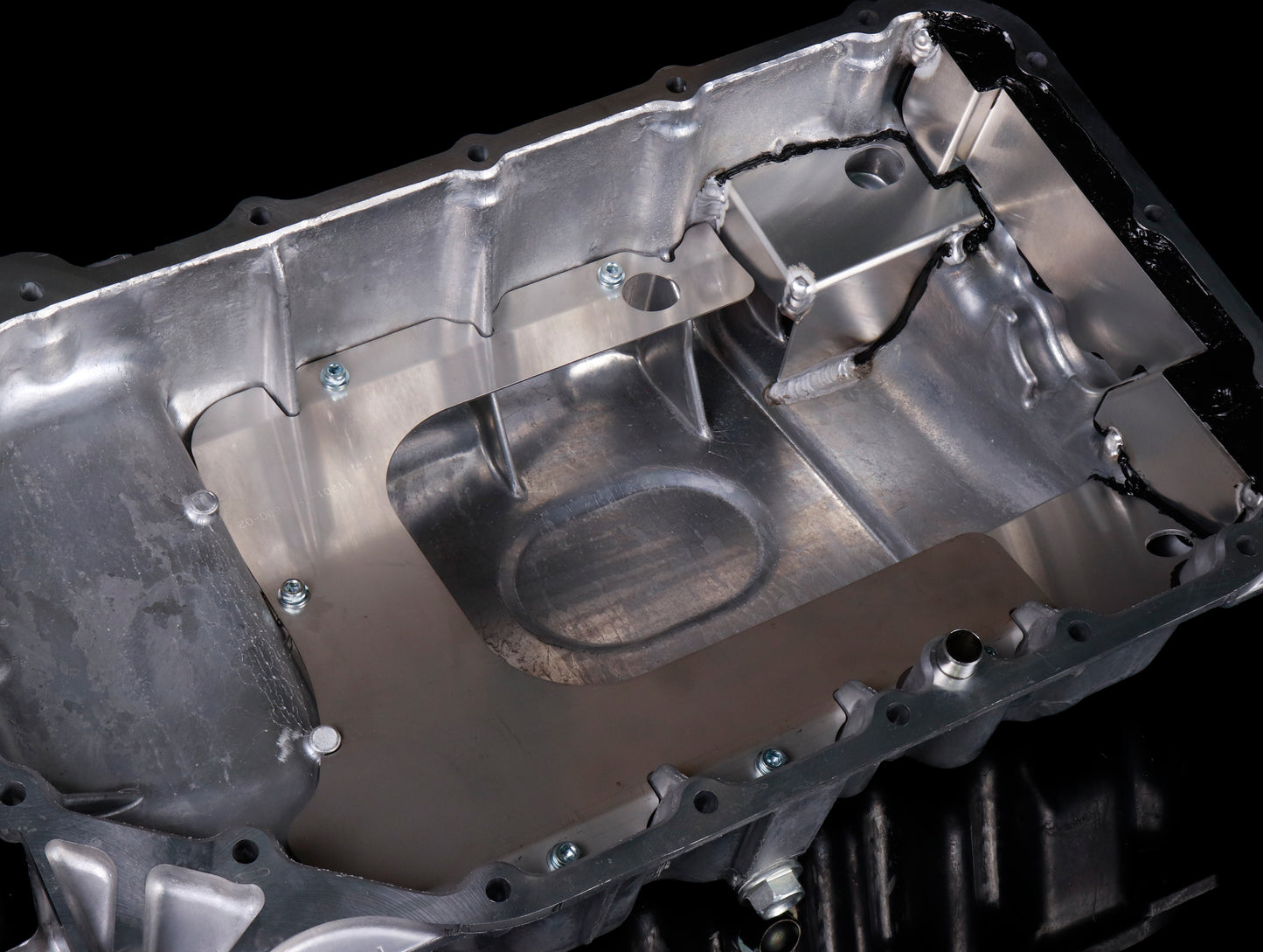 The TODA Racing Anti-G Oil Pan is designed to help prevent oil from moving around under extreme conditions. The pan prevents drops in oil pressure and air from mixing with the oil. The main baffle plate is removable, making it easy to flush out foreign bodies from every hole and corner when overhauling. An extra service hole is provided for an additional oil temp sensor, etc. (1/8PT). A TODA Power logo is etched on the oil pan to show that this is not your standard oil pan.