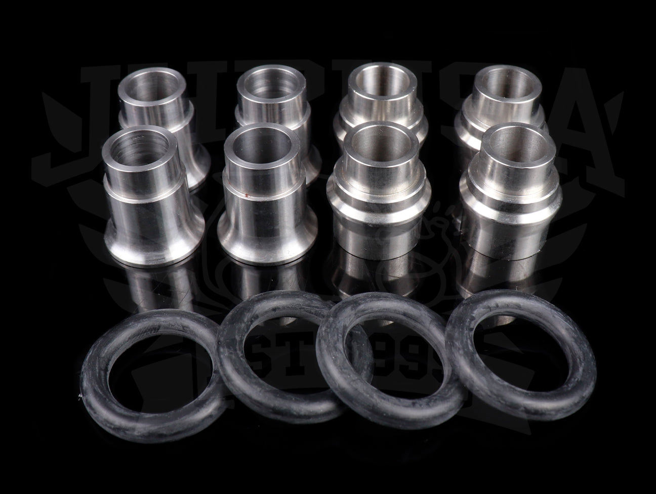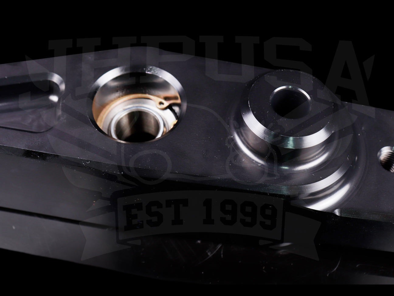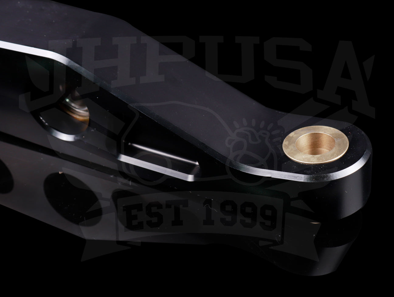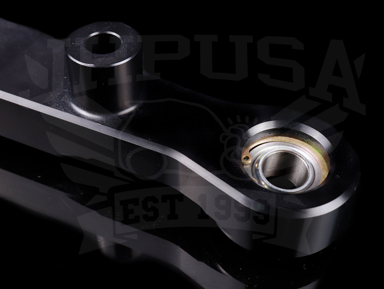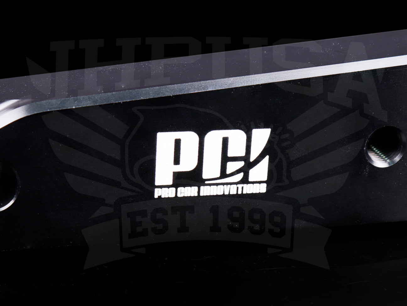 PCI front lower control arms are made from 6061 aluminum equipped with full spherical bearings. Weight is 3.7lbs compared to 6.2lbs oem units. Adds 2-degrees positive caster. M10 sway bar mounting provisions for spherical rod end sway bar links.