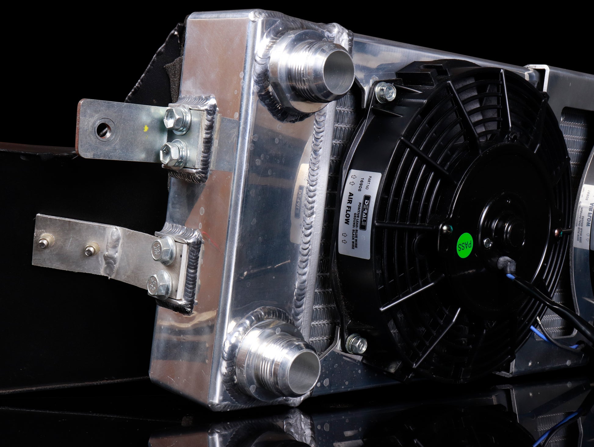 A wiring and motorsports electronic genius, Ryan's mind started to flow with CSF's world leading manufacturing capabilities. Rywire came up with a universal threaded inlet/outlet bung system that could use more "high-end" advanced -16 AN fittings, 1.25" OEM style slip-on hose connections, or even be plugged, for multiple installation configurations. Combined with CSF's 1-hour mirror polish finish, CNC machined brackets, fan shroud, option for dual-fans, and best-in-class packaging, there was finally a major leap in innovation for the tuck radiator market.