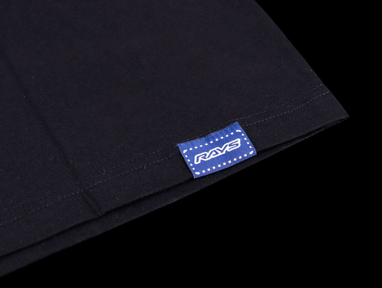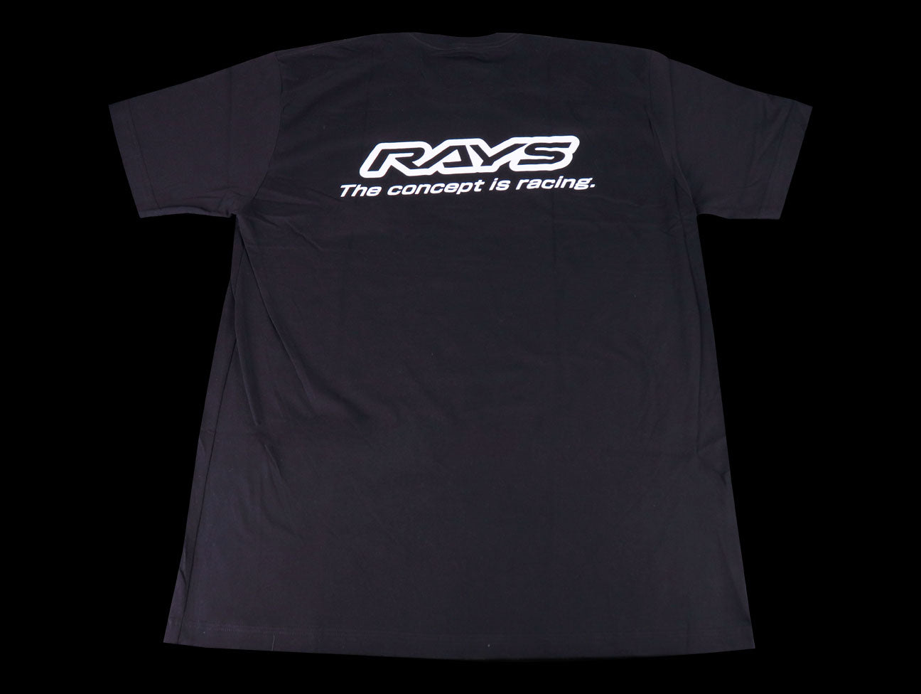 Authentic RAYS white cotton tee with RAYS logo on front left breast and 'RAYS The Concept Is Racing' logo on the back. Rays tag at the rim of the shirt. Tagless Tee.