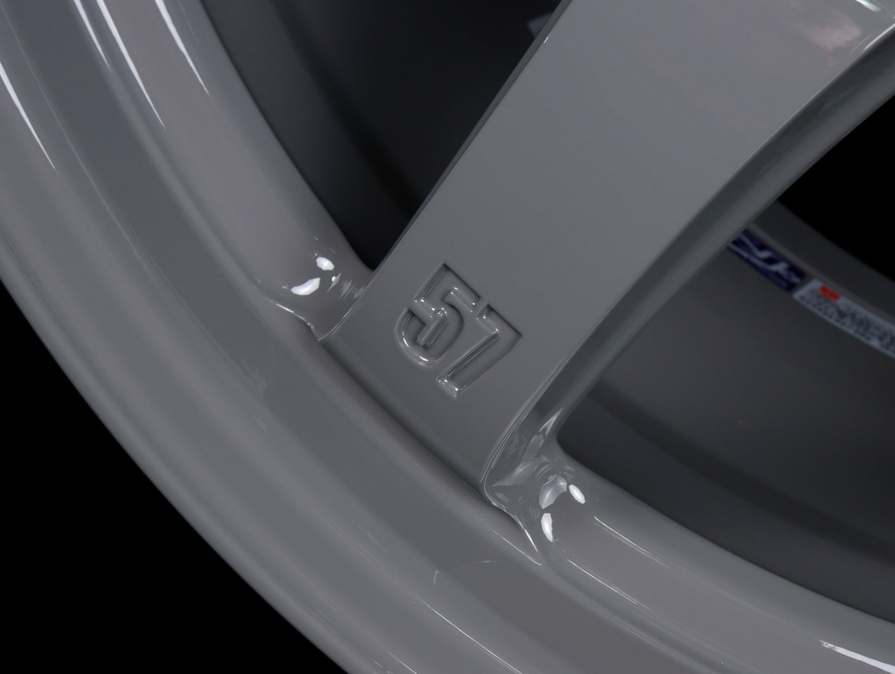 The new 57CR model was taken from the roots of the original 5 spoke 57C. Size settings are carefully selected for use in sports scenes including racing and drifting competitions. The spoke rises from the rim well through to the center section to provide an ultimate concave design while maintaining rigidity and strength as a priority. Difference face designs are available depending on the rim width. This simple yet refined design provides a visual appeal with a concave face design for optimal brake clearances. Rays logo and the 57 mark is embossed onto the spoke.