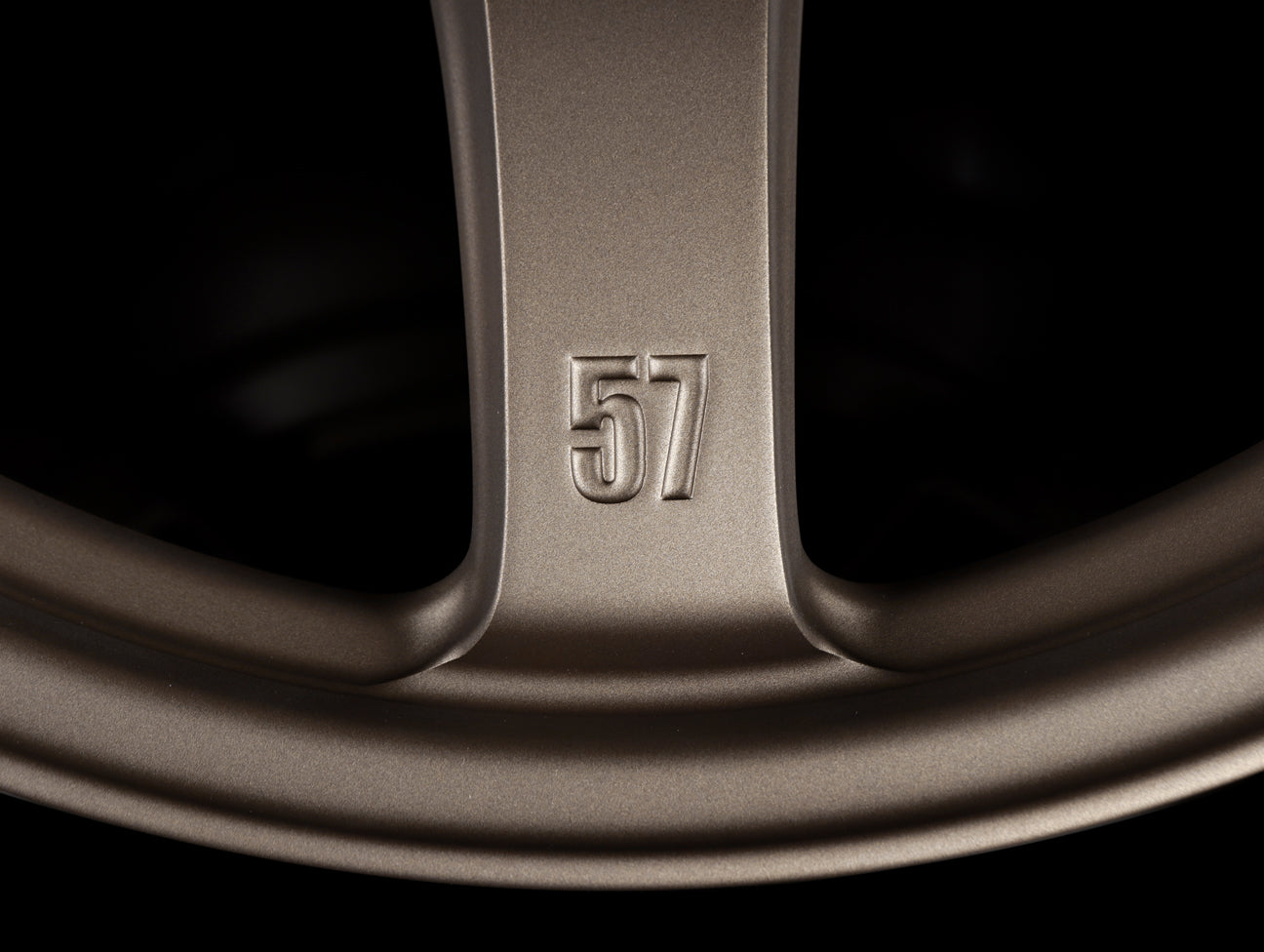 The NEW 57CR model was taken from the roots of the original 5 spoke 57C. Size settings carefully selected for use in sports scenes including racing and drifting competitions. The spoke rises from the rim well through to the center section to provide an ultimate concave design while maintaining rigidity and strength as priority. Difference face designs available depending on the rim width. This simple yet refined design provides a visual appeal with a concave face design for optimal brake clearances. Rays logo and the 57 mark is embossed onto the spoke.