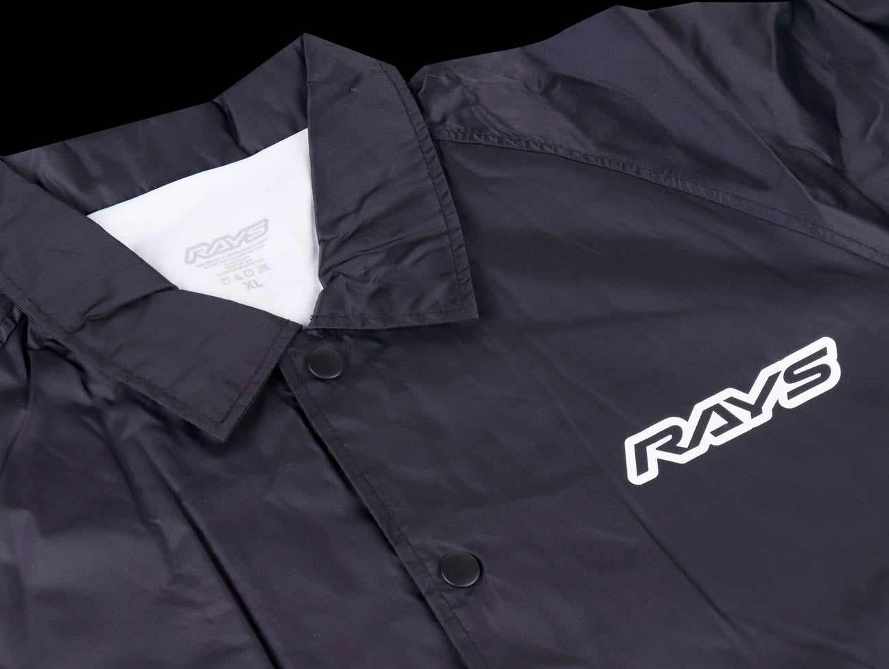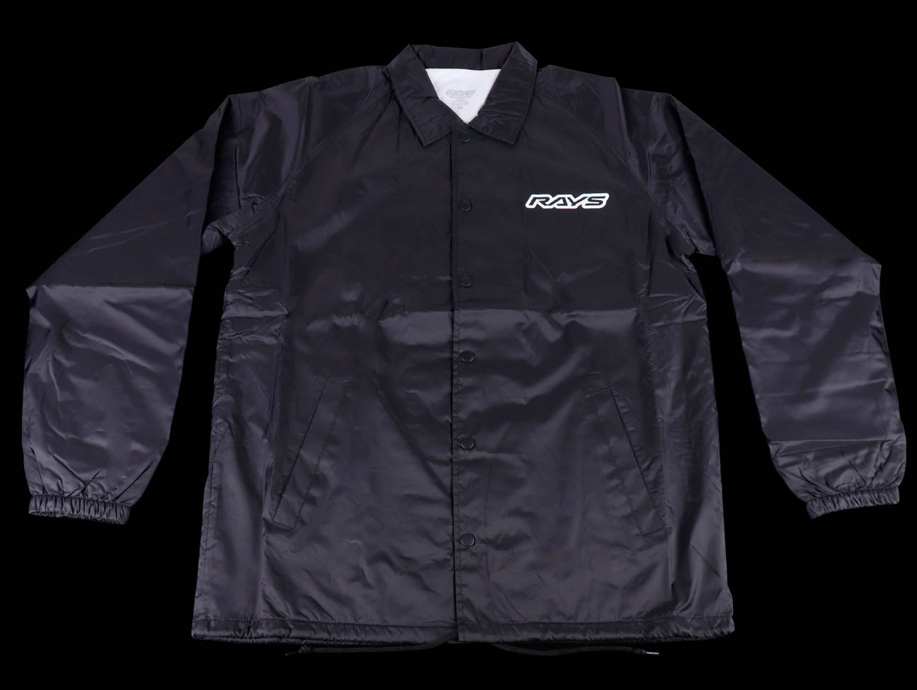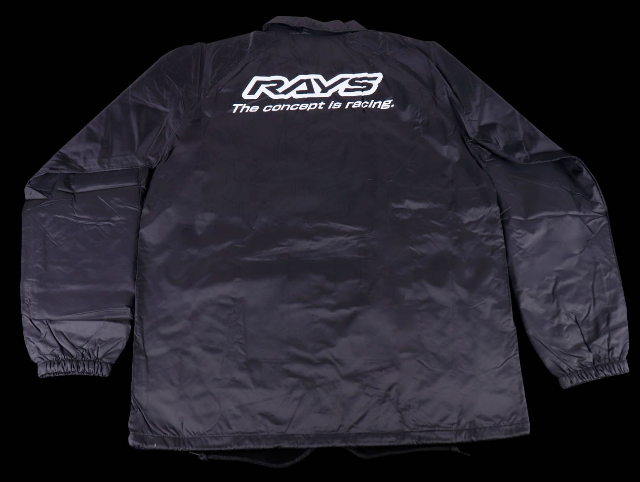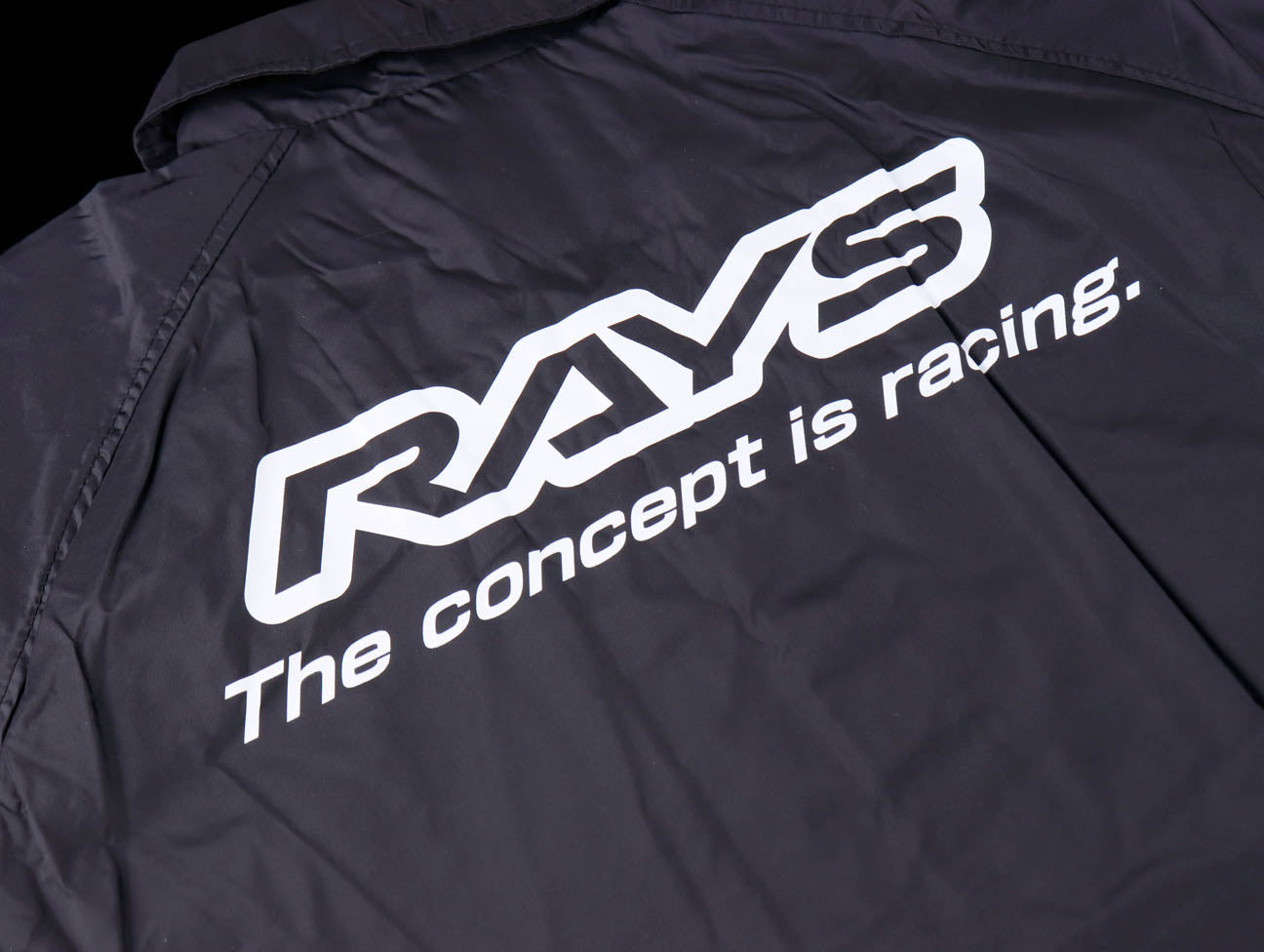 The Rays Wheels "The Concept is Racing" Black windbreaker is the perfect Fall weather jacket. It features a water-resistant Nylon shell with a warm insulating polyester lining for flexibility in windy, rainy, and cold climates.