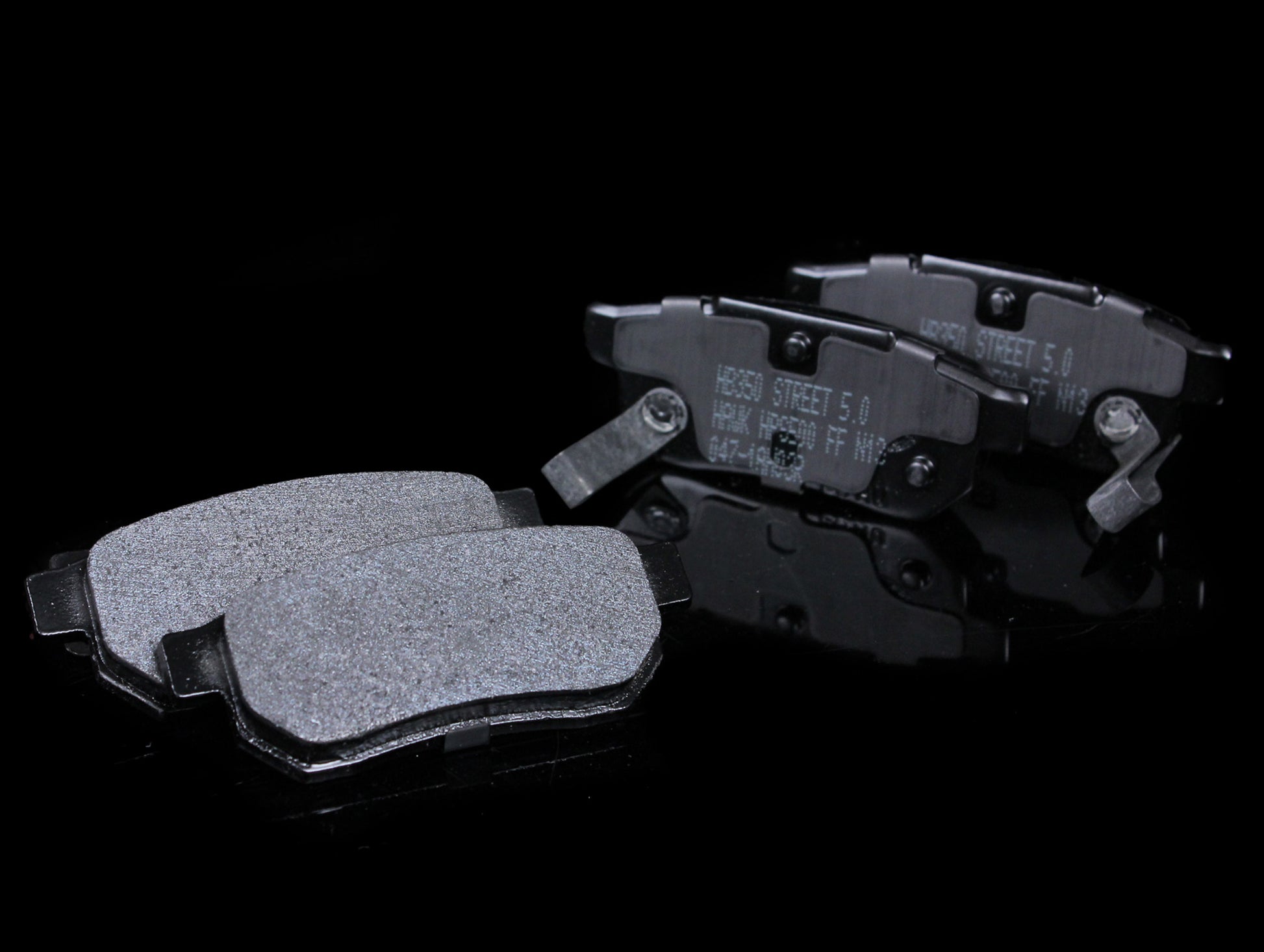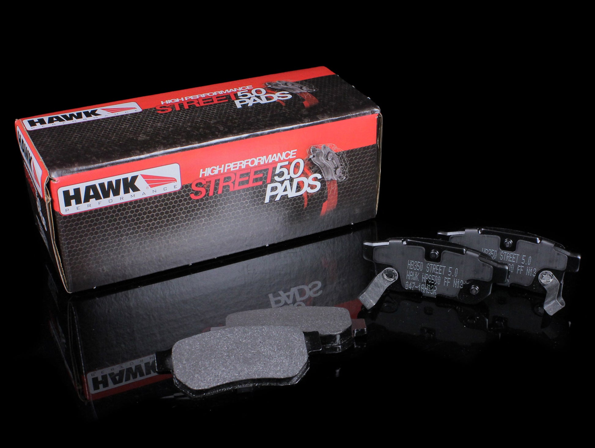 Hawk High Performance Street 5.0 Brake Pads improve performance with increased stopping power and resistance to brake fade. Developed as a more responsive and durable option compared to Original Equipment, the pads release low levels of dust in normal street driving conditions while also creating little noise.
