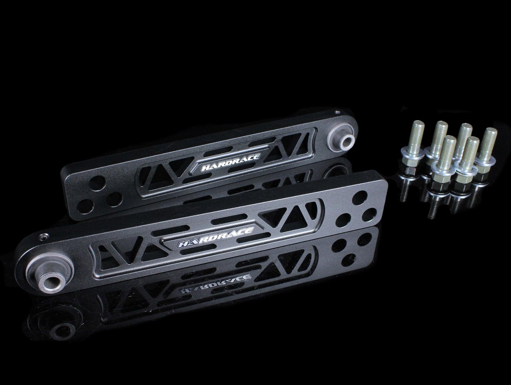 Hardrace rear lower control arms are CNC machined out of aluminum and are packed with Hardrace 50mm Pillowball (spherical) or hard rubber bushings. They are one of the highest quality control arms on the market!