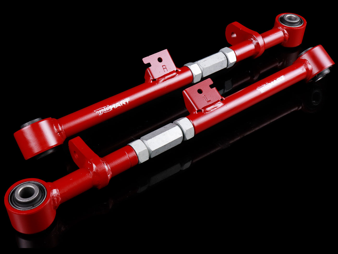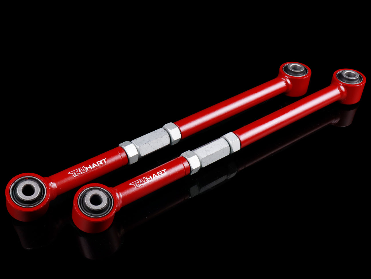 TruHart lateral arms replace your factory arms with strengthened adjustable arms. Our lateral arms utilize hardened rubber bushings which allows for less deflection and provides a more direct feel road feel than OE bushings.