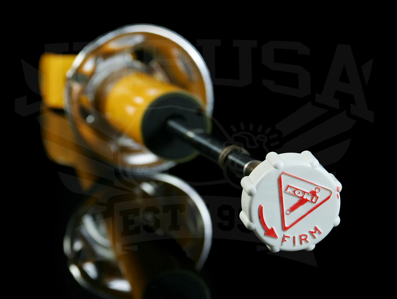 - Externally adjustable rebound damping easily achieved by using included knob. Full stiffness at 2 full turns -- not 25 turns like silly JDM suspension!