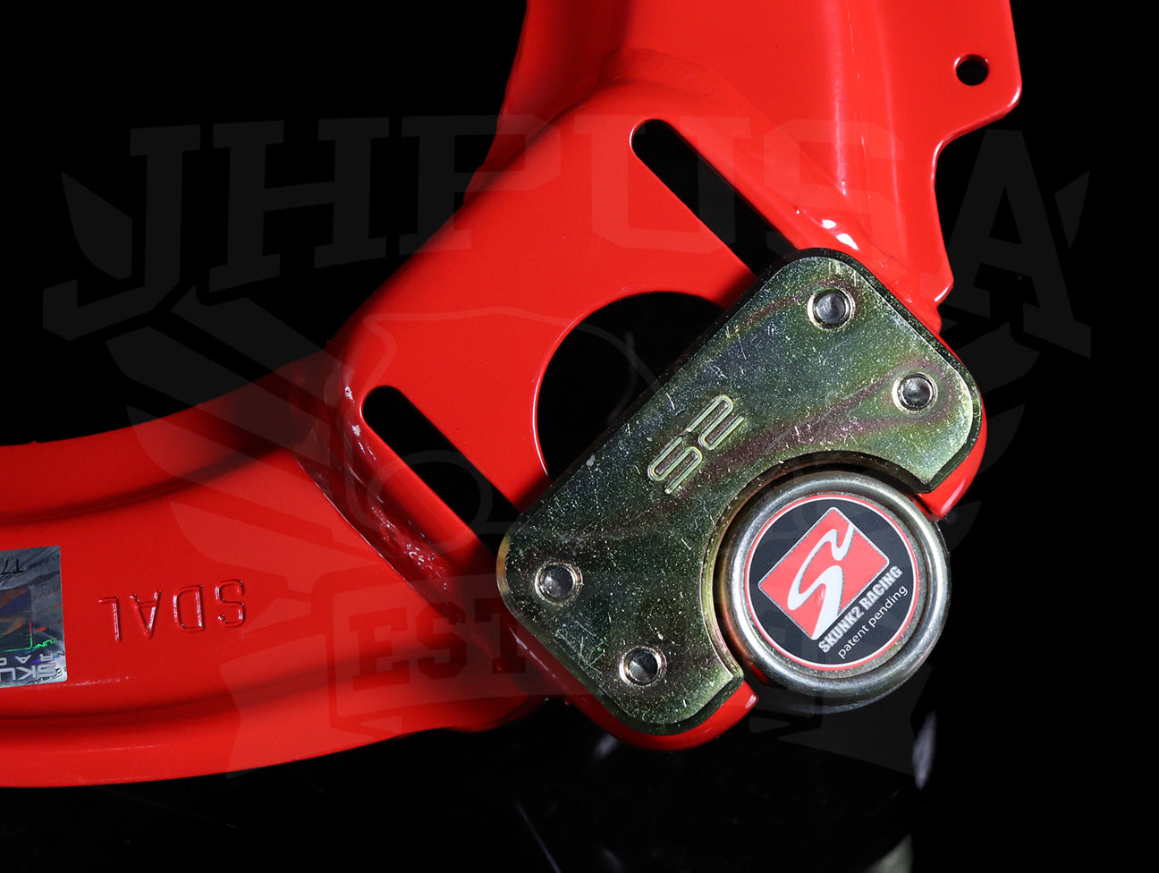 Skunk2's patented Pro Series Front Camber Kits feature the most innovative, durable ball joints available. No other ball joint lasts as long, performs as well, or offers as much clearance for dramatically lowered vehicles.