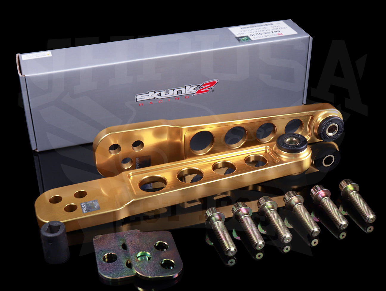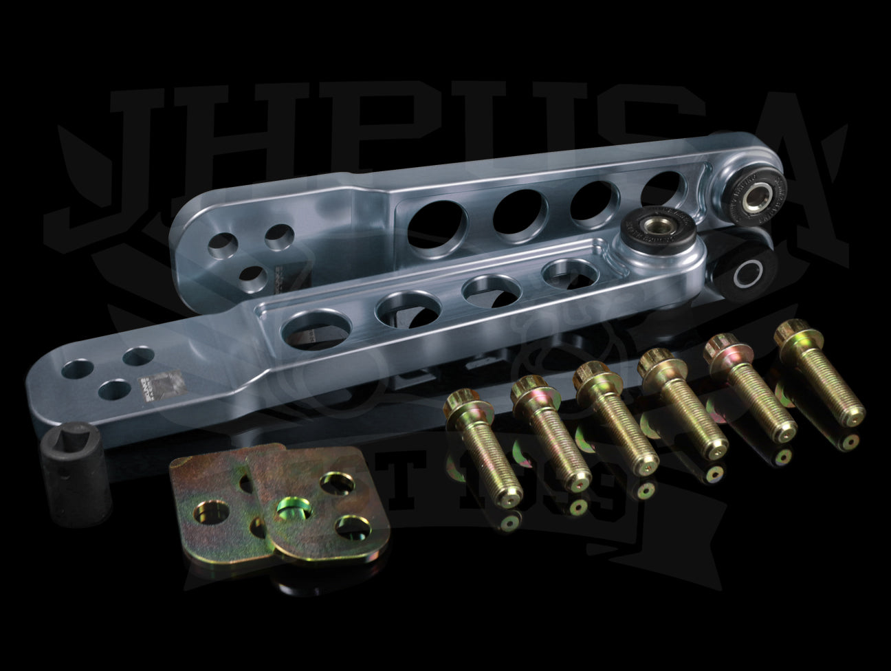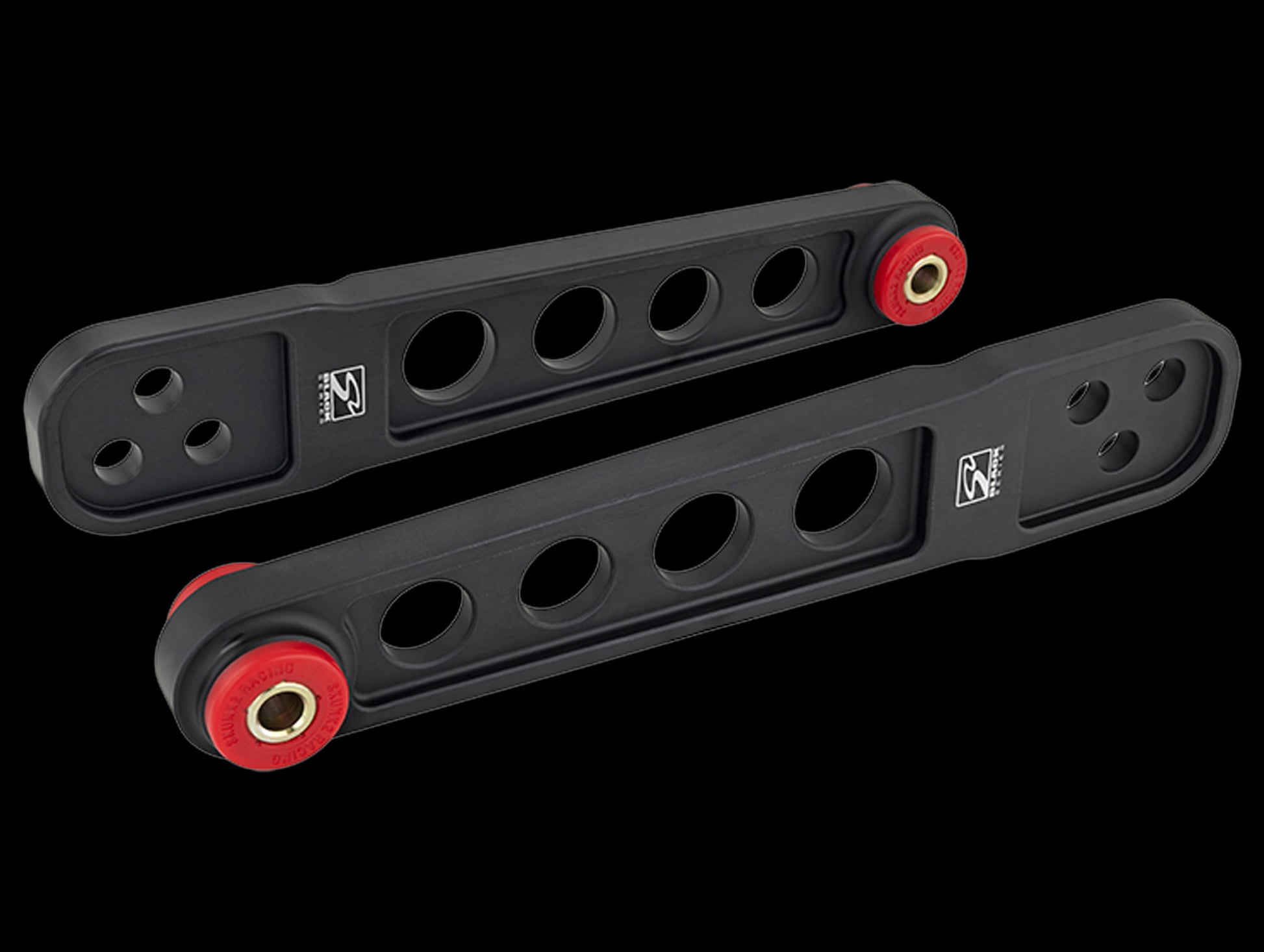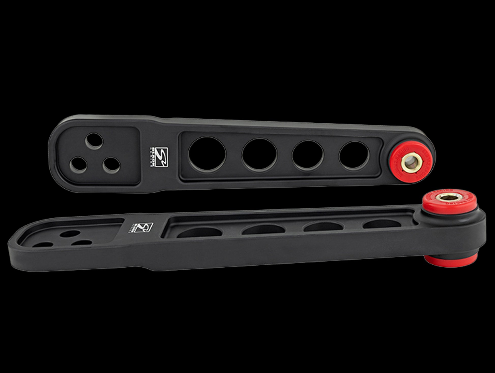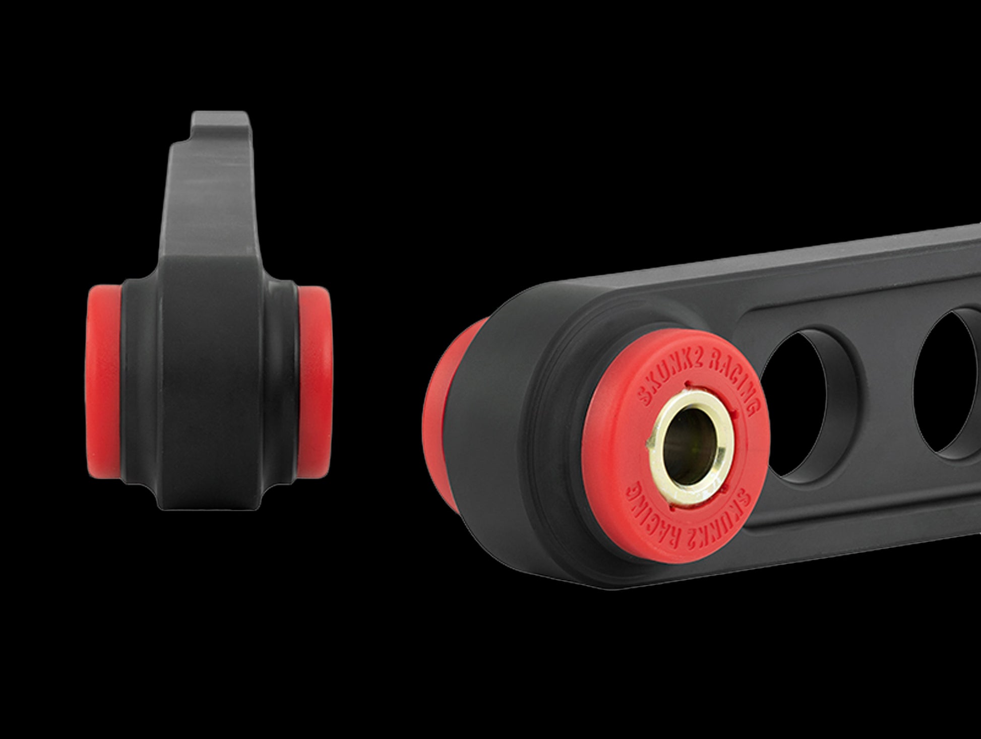 Each arm is CNC machined from high-quality 6061 Billet Aluminum for weight savings and increased strength and rigidity. Low deflection 80 durometer polyurethane bushings provide a large increase in feedback and handling while offering lower NVH (noise/vibration/harshness) than harder or spherical bearing type bushings. Additionally, tearing and un-seating issues are eliminated with their bushing design that allows the arm to rotate freely about the bushings.