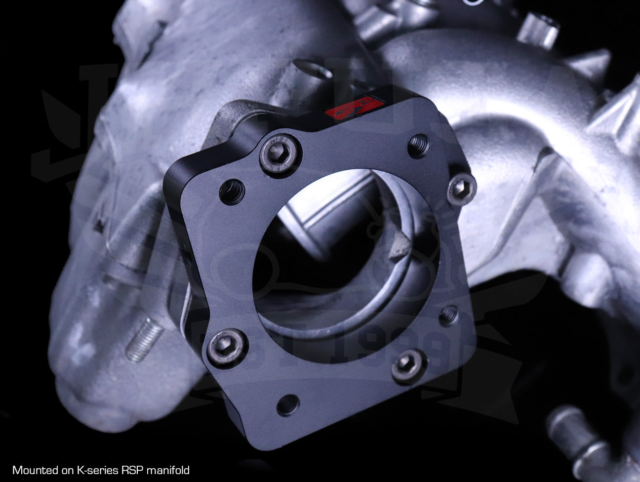 Skunk2's all-new K2B Throttle Body Adapter now offers H-series enthusiasts even more flexibility. Thanks to Skunk2's 6061-T6 billet aluminum adapter, any B/H-series throttle body can be bolted onto any RBC-style K-series intake manifold, which is particularly useful when combined with Skunk2's H2K Intake Manifold Adapter.