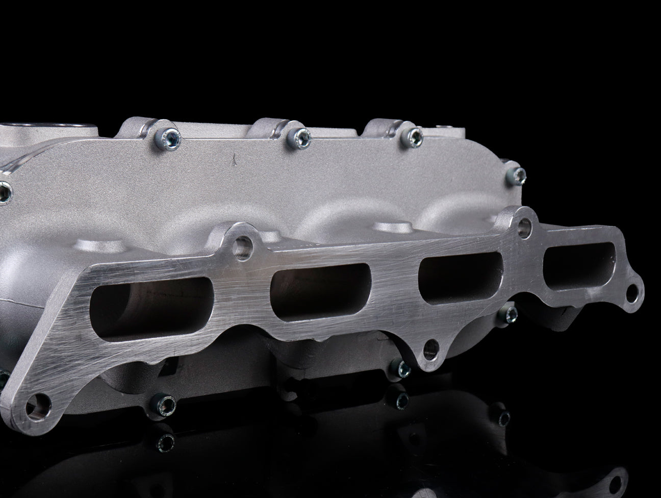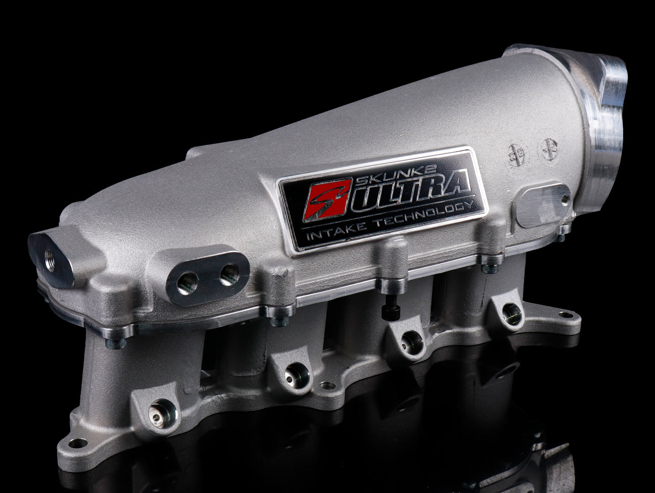 Cast from high-grade 356 aluminum alloy due to its high strength, low weight properties and CNC machined for precision fitment. Thick-walled intake runners leave large allowances for porting to minimize chances of breakthrough and a larger 70mm throttle body opening offer maximum air flow.