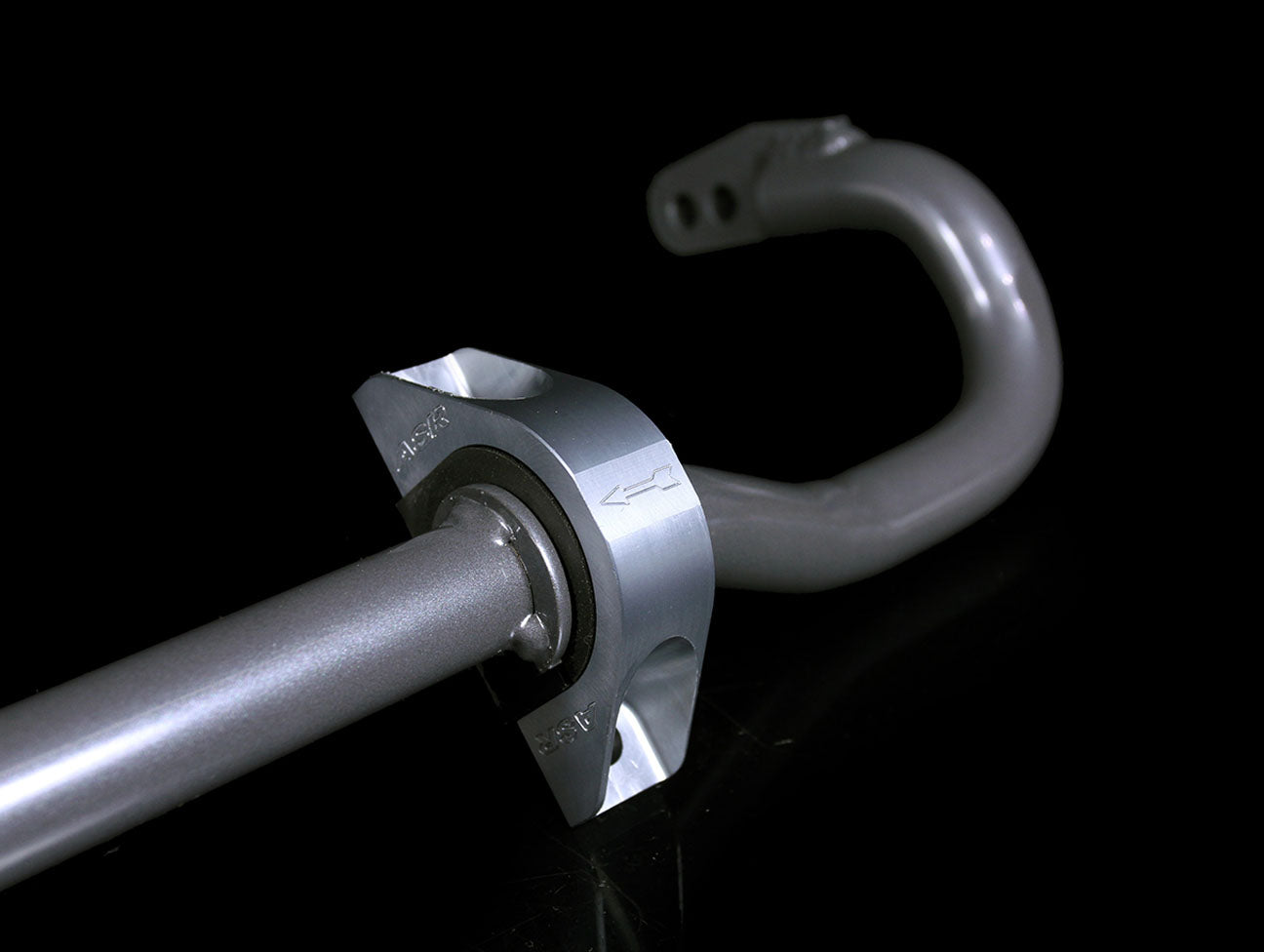 The ASR 24mm swaybar is the perfect bar for a those looking for a startup setup. It features a swaybar that is the same dimensions and look as a OEM swaybar but is significantly stiffer due to its increased diameter. This bar has a two position end link setting for fine tuning. For the more serious, the included ASR subframe brace can support an ASR 32mm hollow bar upgrade (available separately).