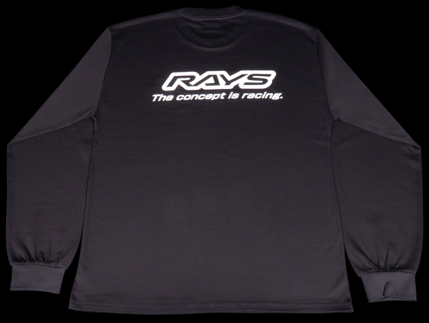 Authentic RAYS cotton long sleeve tee with RAYS logo on front left breast and 'RAYS The Concept Is Racing' logo on the back. Rays tag at the rim of the shirt. Tagless Tee.