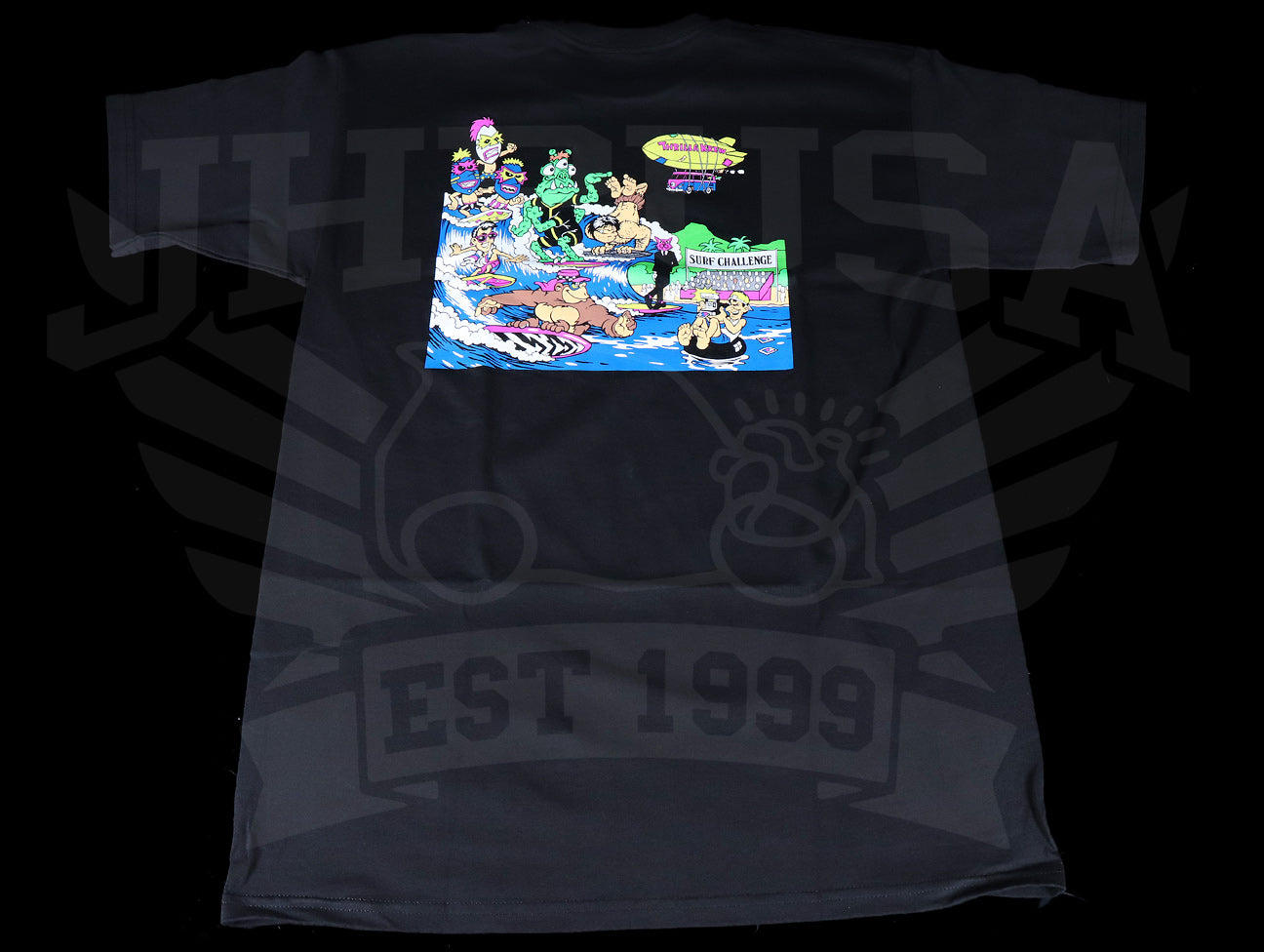Surf Challenge -available for the first time since the 80s! This classic reissue features all Da'Boys as illustrated by Steve Nazar. Even the elusive surfing alien joins Thrilla Gorilla and the rest of the Thrilla Krew on this one.