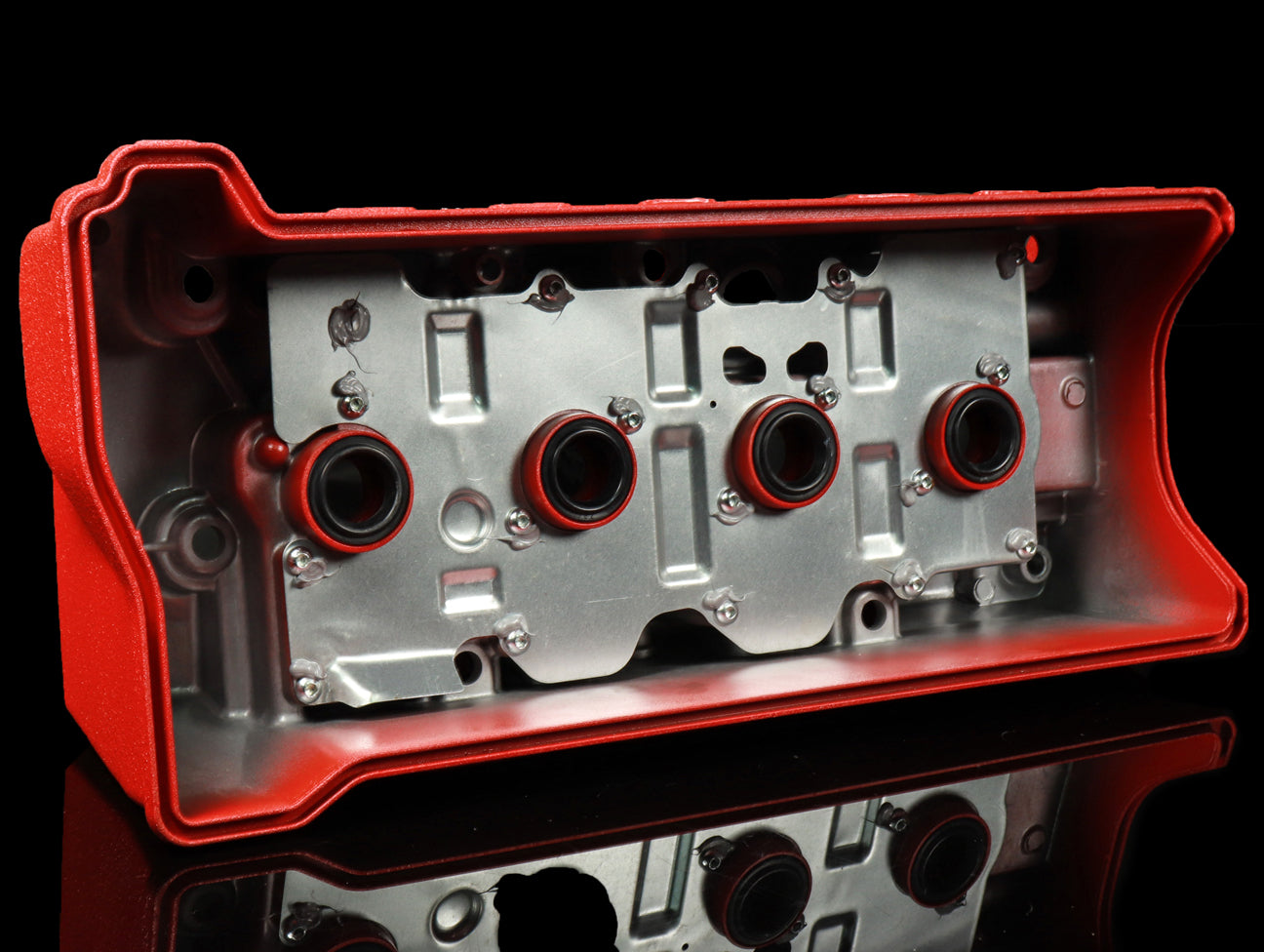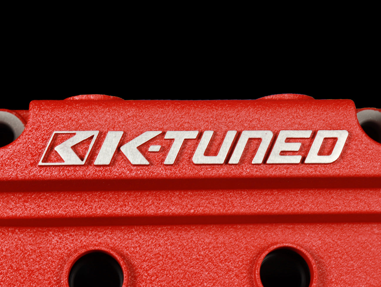 K-Tuned and Drag Cartel's collaboration limited release wrinkle red & black valve cover perfect for boosted or high HP K-Series Cars. Features two -10AN ports on the front, two -10AN ports on the back, and one -8AN port to replace the stock breather. Four -10AN plugs are included and one -8 ORB to 5/8 barb for stock breather. Hardware and spark tube gaskets are included.