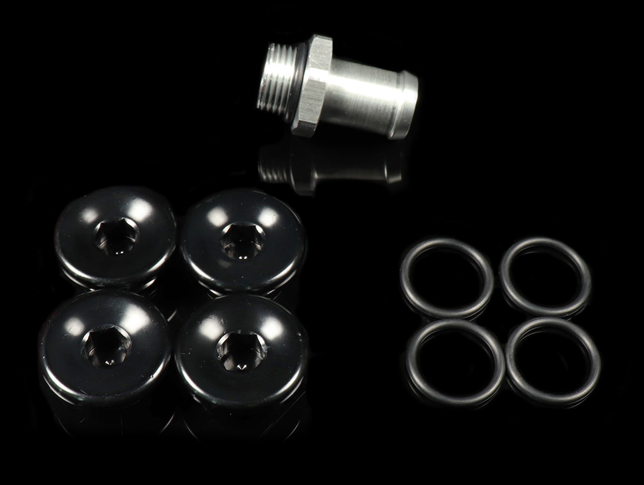 - Included -8O RB to 5/8 barb fitting for OEM breather hose.