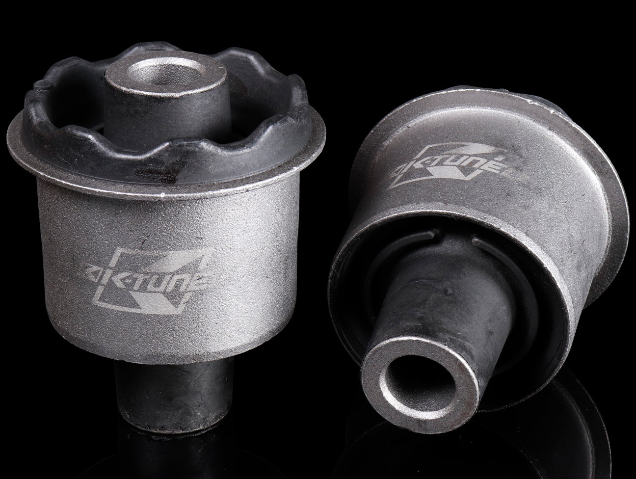 Replacement trailing arm bushings in hardened rubber. Old worn and tired bushings will drastically reduce the feel and handling of your car. Replacing worn bushings and suspension components can really make an older car feel new again. K-Tuned's rubber bushings feature a stiffer durometer than OEM and are designed to last. Spherical bushings are perfect for race cars that need solid but smooth movement of suspension components.