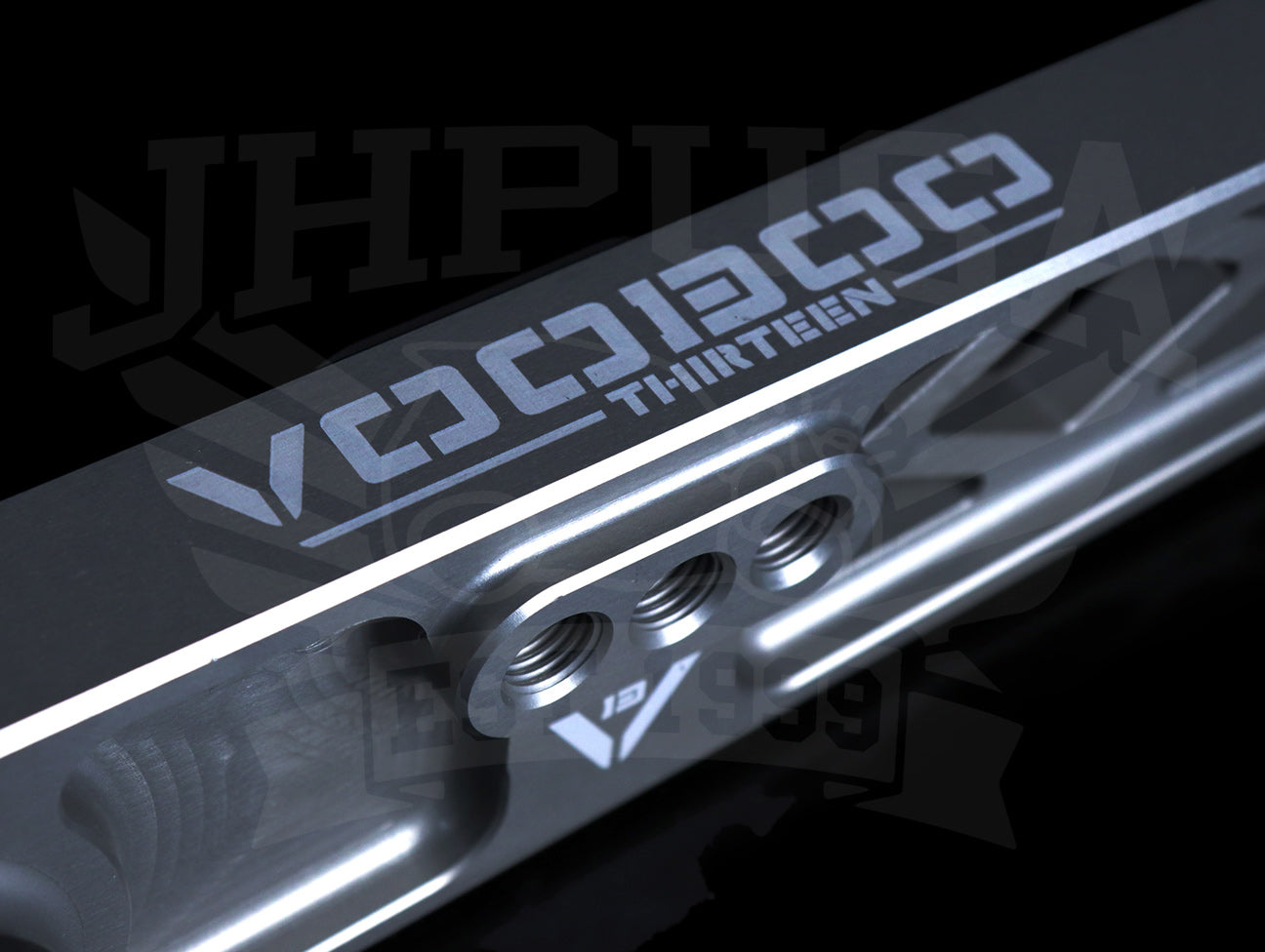 Voodoo13 are precision CNC machined from high strength 6061 aluminum then coated in MIL-A-8625 Type III Hard Anodize ensure these control arms are lightweight and corrosion resistant. Specially engineered Energy Suspension polyurethane bushings allow optimal deflection rates and increased longevity over OE bushings. Voodoo13's aluminum flange bushing design allows maximum surface contact between the bushing and vehicle mounting locations while not allowing the bushing to prematurely wear.