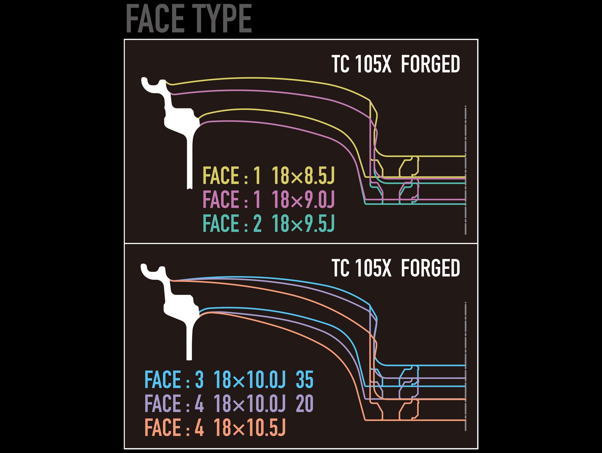 The new Wedsports TC105X Racing Wheel was developed and tested under 3+ years of the rigorous racing environments in the Japanese Super GT Racing Series. A high tech machining process is used to create wheels with greater performance, without sacrificing the elegance of beautiful design. The aluminum structure is specially tempered with the AMF spinning process, with a new conical barrel shape allowing for a wide variety of big brake options. The TC105X are available in a wide range of sizes and offsets and are designed to accommodate many of the big-brake kits on the market.