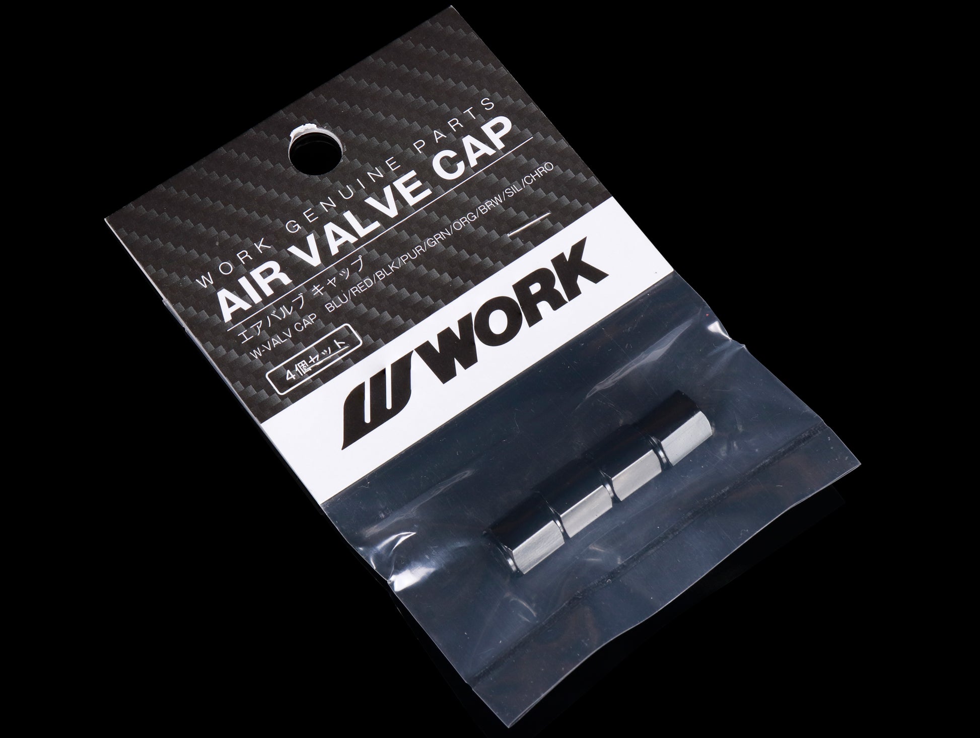Work air valve caps are sold as a set of 4, featuring an authentic "W" Work Wheel logo etched into the cap top. They complement all Work wheels and are also compatible with other wheel brands.