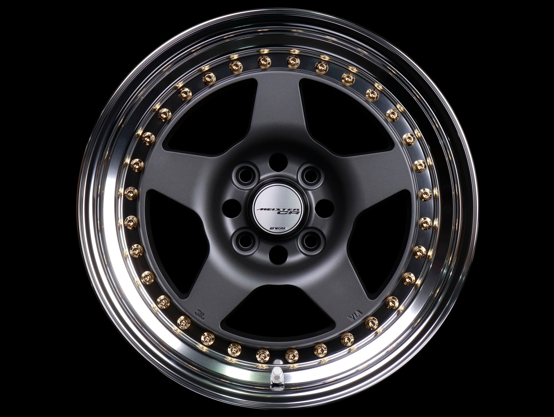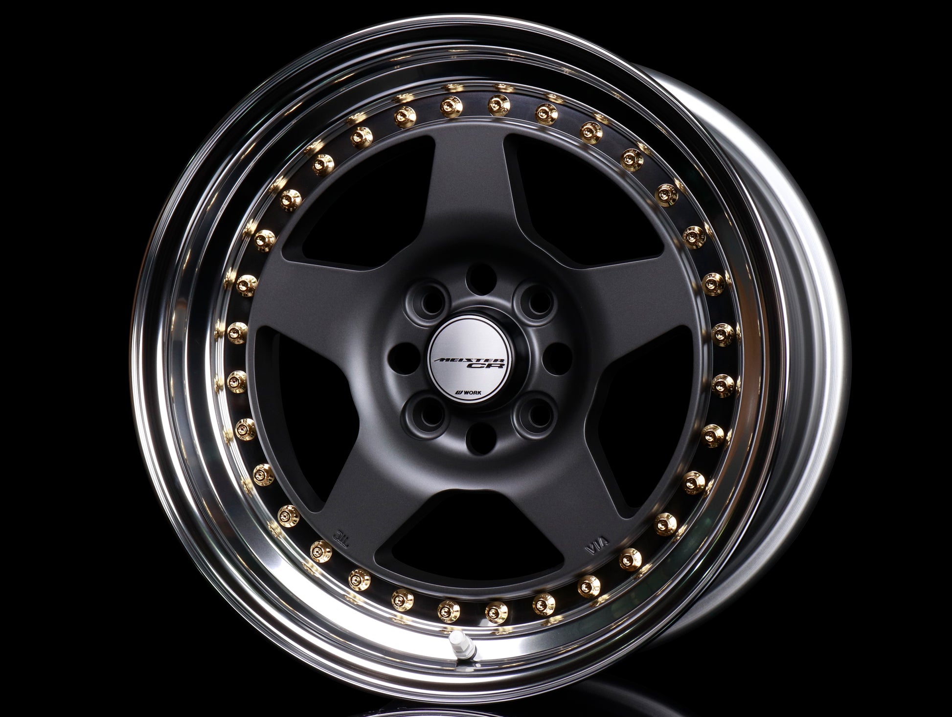 Work Meister CR 01 3-Piece Wheels - Matte Gunmetal w/ Polished Lip + Gold Hardware - 15x8 / 4x100