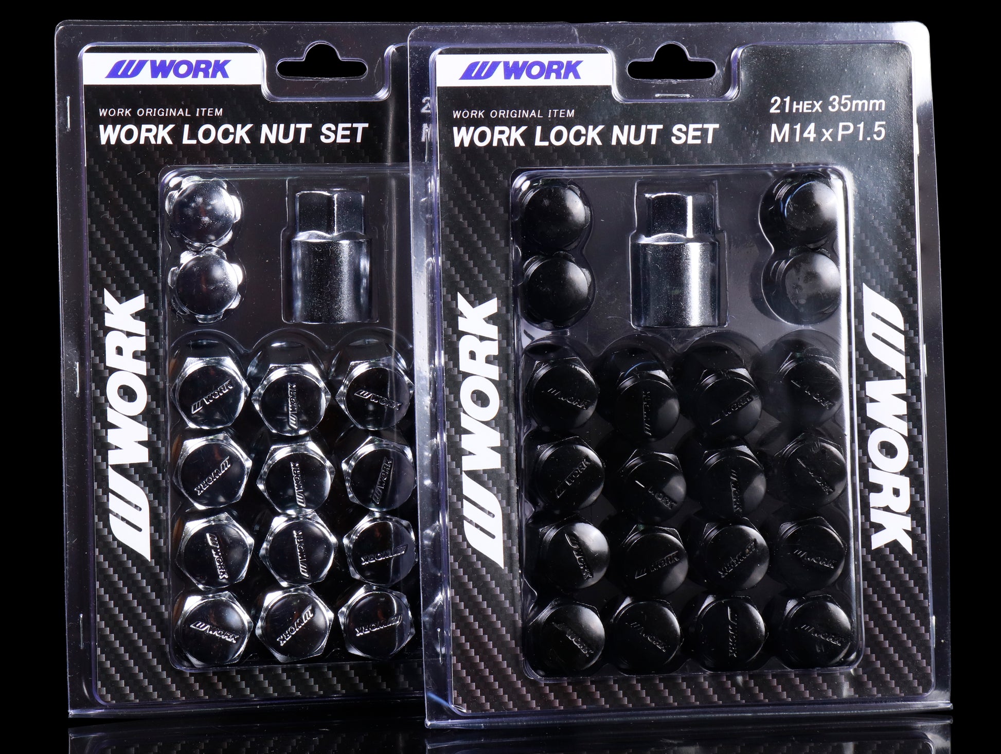 WORK offers a range of lug nuts to be used with WORK Wheels and many other brands of aftermarket wheels. WORK lug nuts are standardized to use with any aftermarket wheel with 60 degree conical taper seat (will not fit OEM seat wheels).