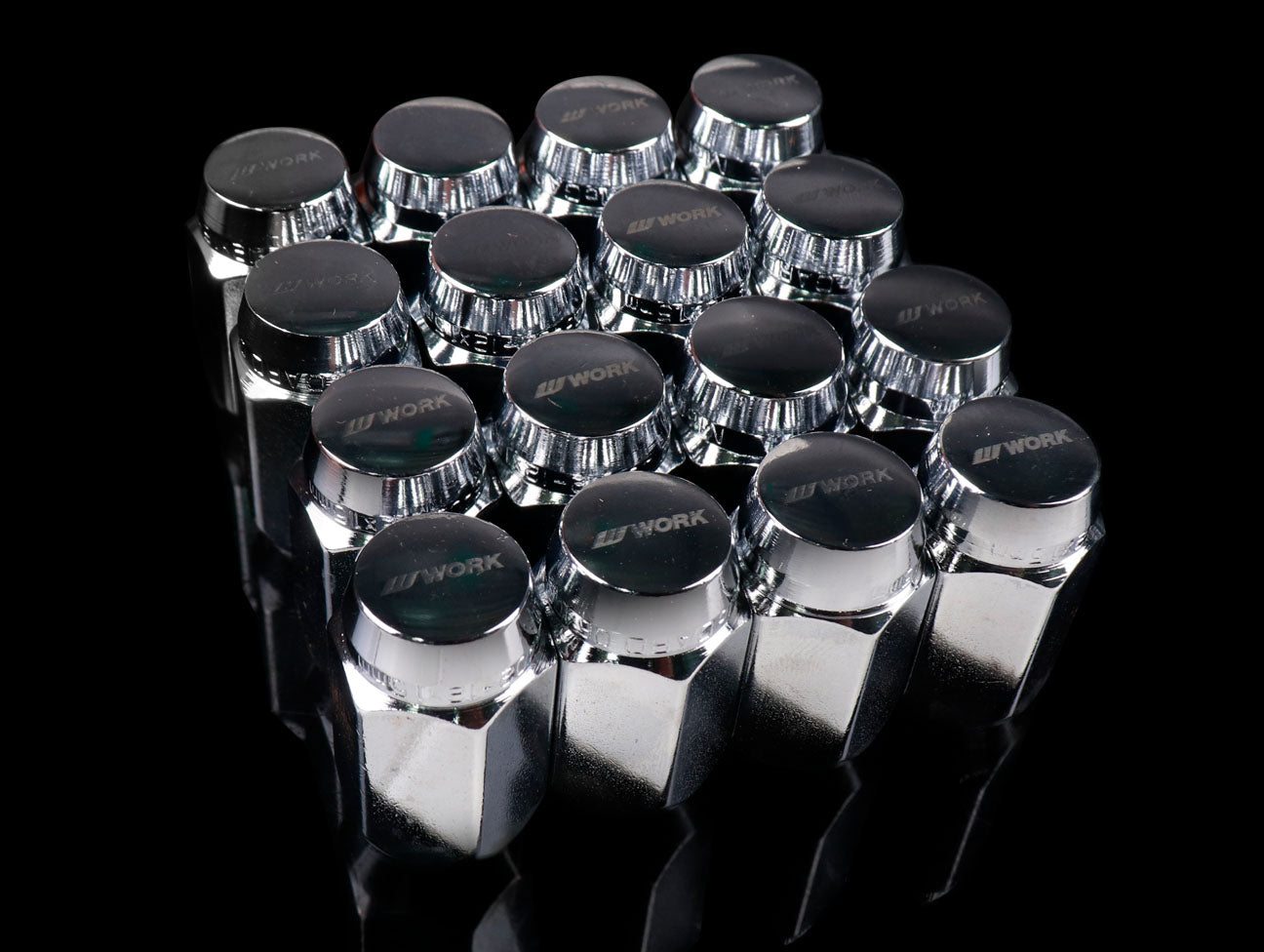 WORK offers a range of lug nuts to be used with WORK Wheels and many other brands of aftermarket wheels. WORK lug nuts are standardized to use with any aftermarket wheel with 60 degree conical taper seat (will not fit OEM seat wheels).