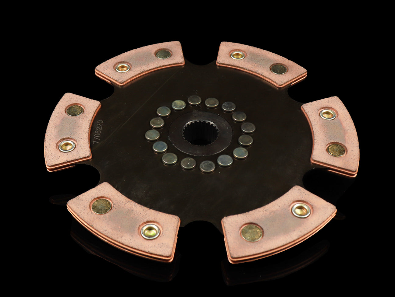 ACT's 6-pad rigid race discs are made with high quality, ceramic friction materials. The chrome-moly hub is heat-treated for strength and durability. The lightweight, rigid design allows for quicker shifts and smooth, trouble-free service. With the 6-pad rigid race disc, engagement is harsher, but shifting is faster. The 6-pad rigid race disc is recommended for larger clutch sizes to absorb more heat.